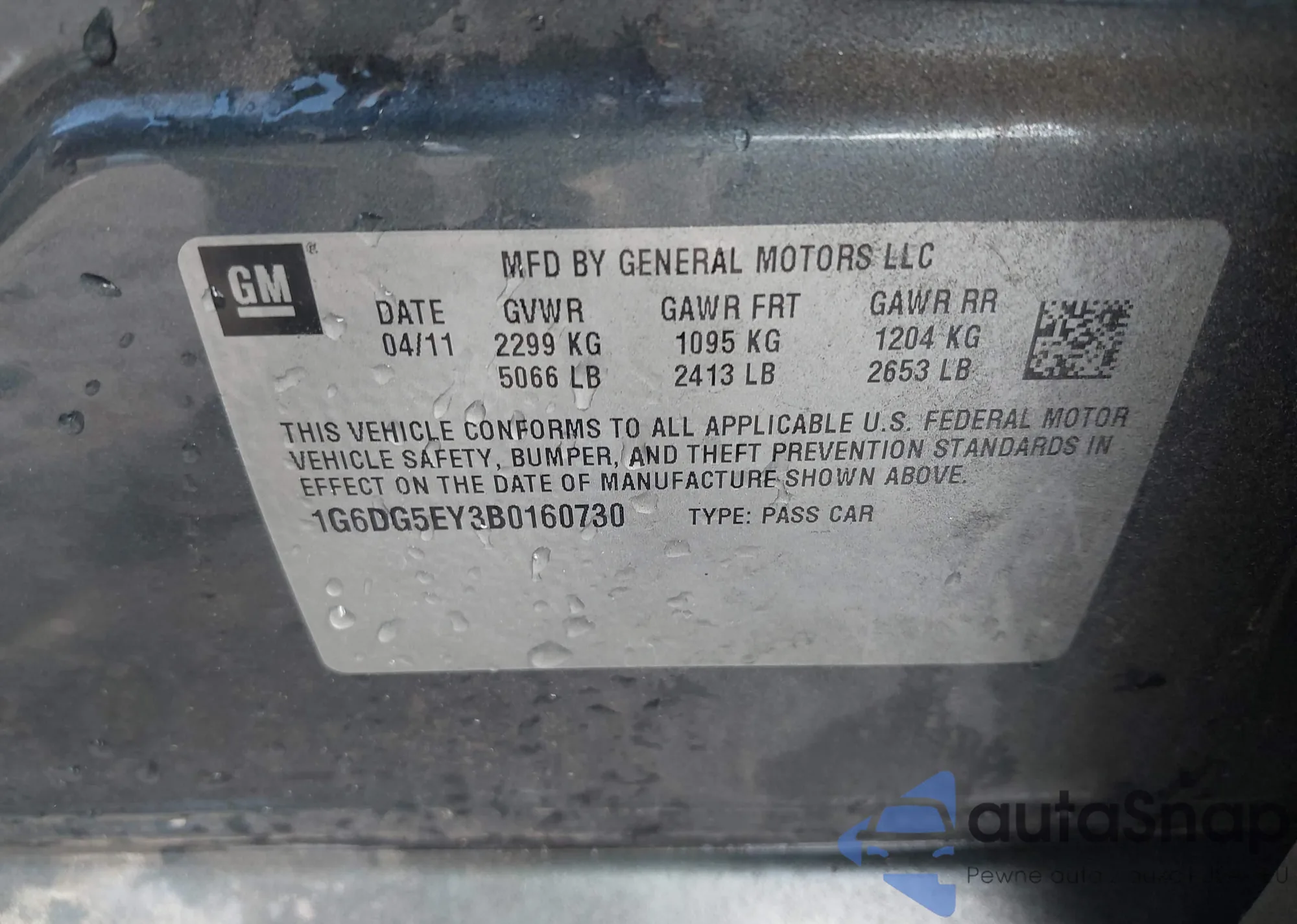 LOT: 43233014 VIN: 1HGCP3F80BA001686