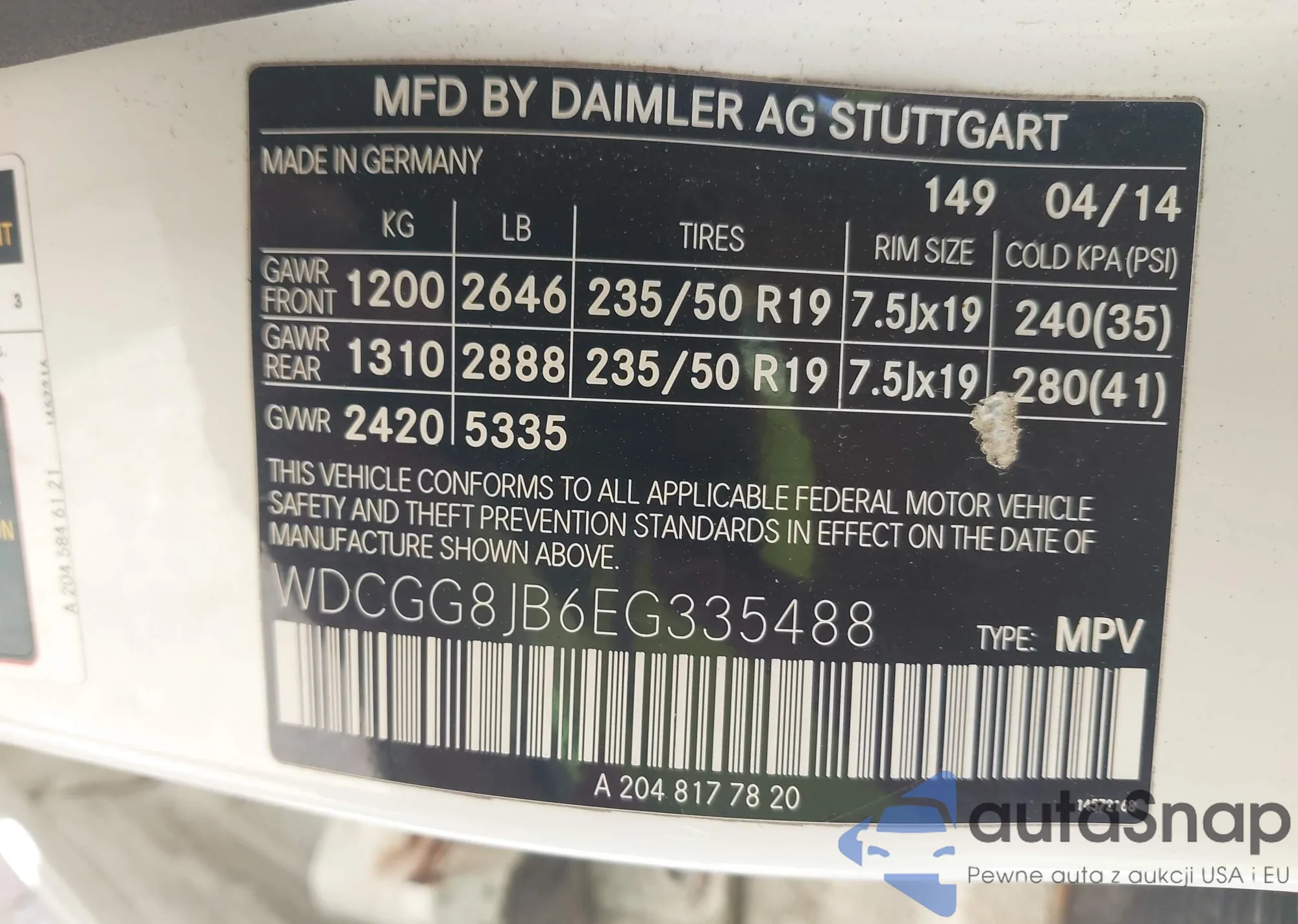 • VIN WDCGG8JB6EG335488