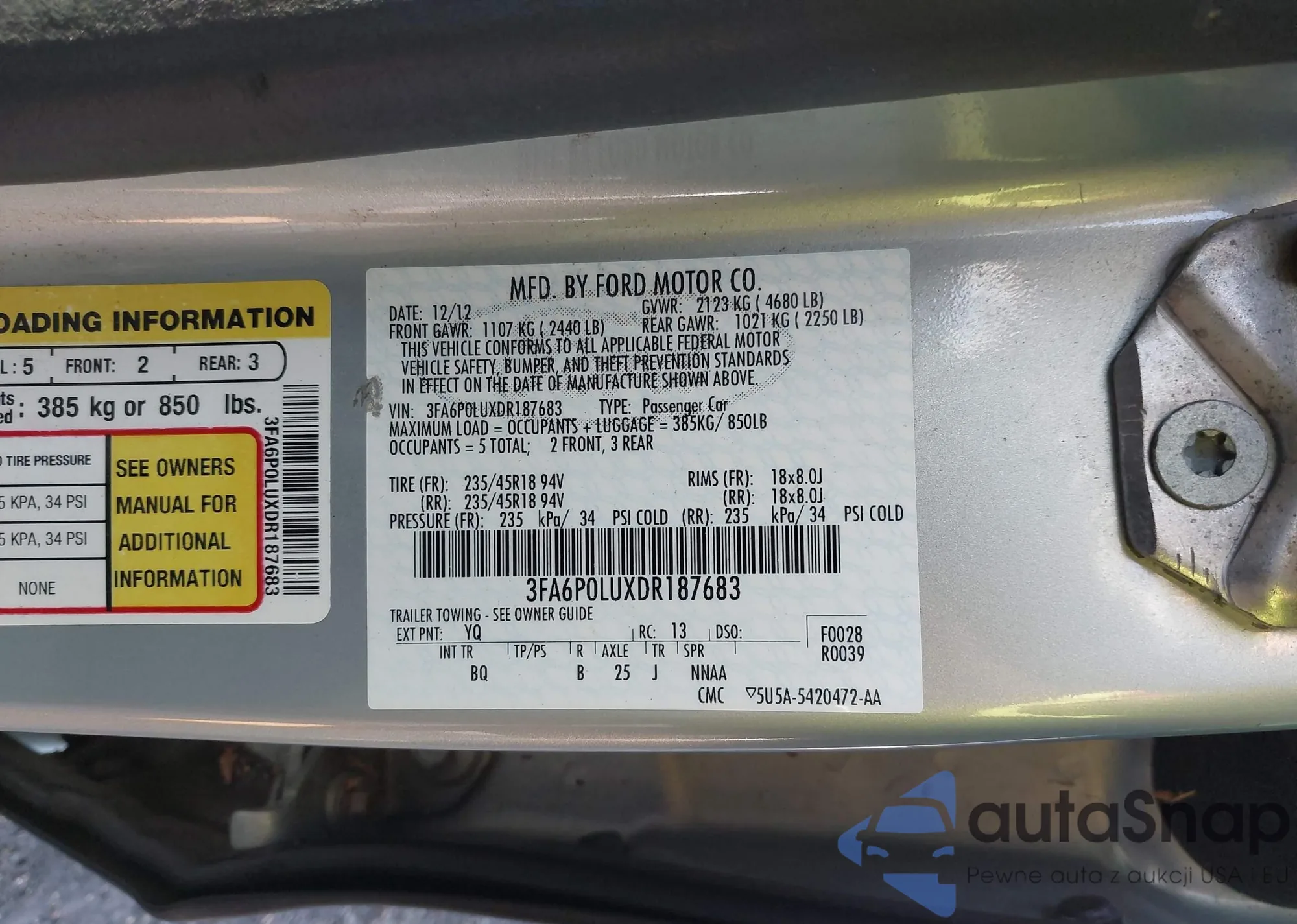 LOT: 43258441 VIN: 3FA6P0LUXDR187683