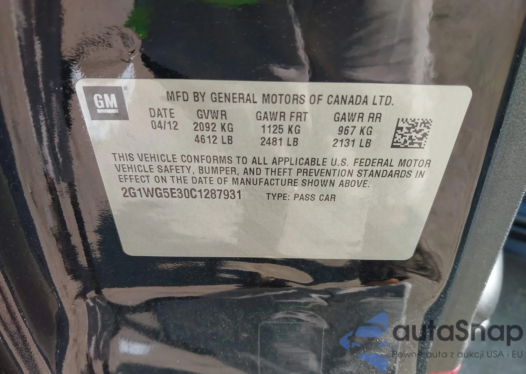 • VIN 2G1WG5E30C1287931