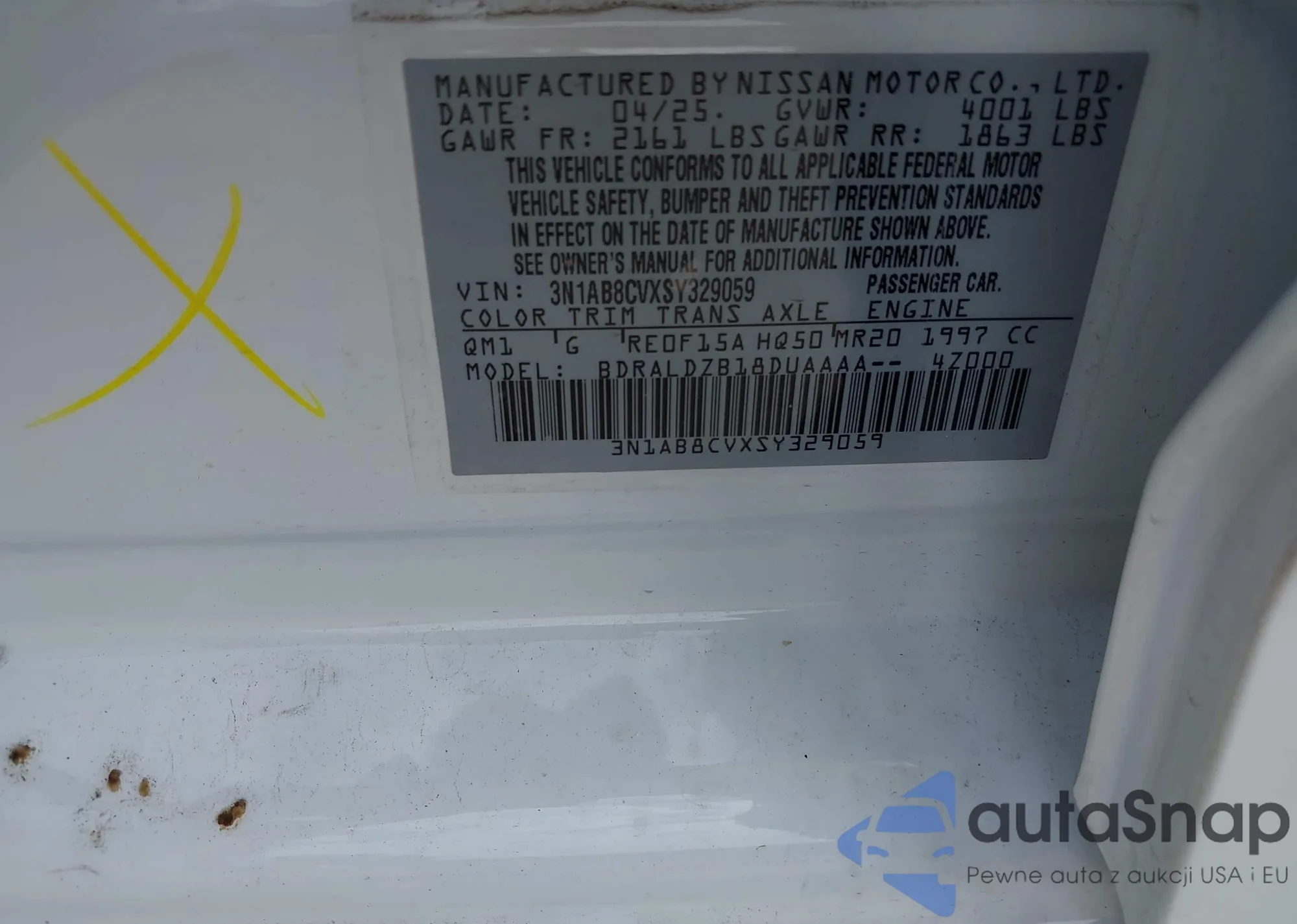 LOT: 42807160 VIN: 3N1AB8CVXSY329059
