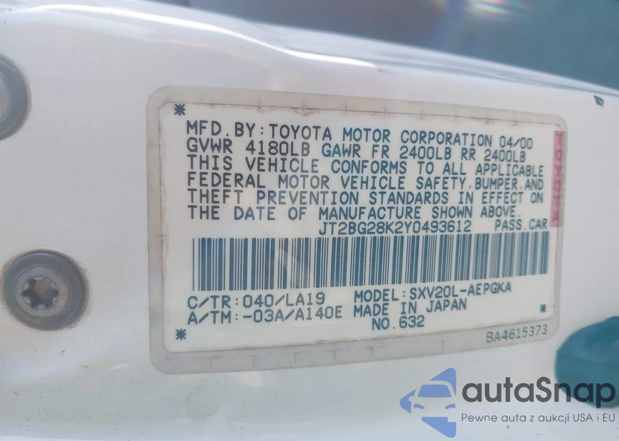 • VIN 4T1BK36B47U180899