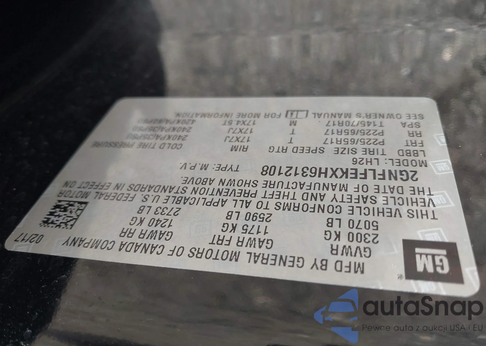 • VIN 2GNFLFEKXH6312108