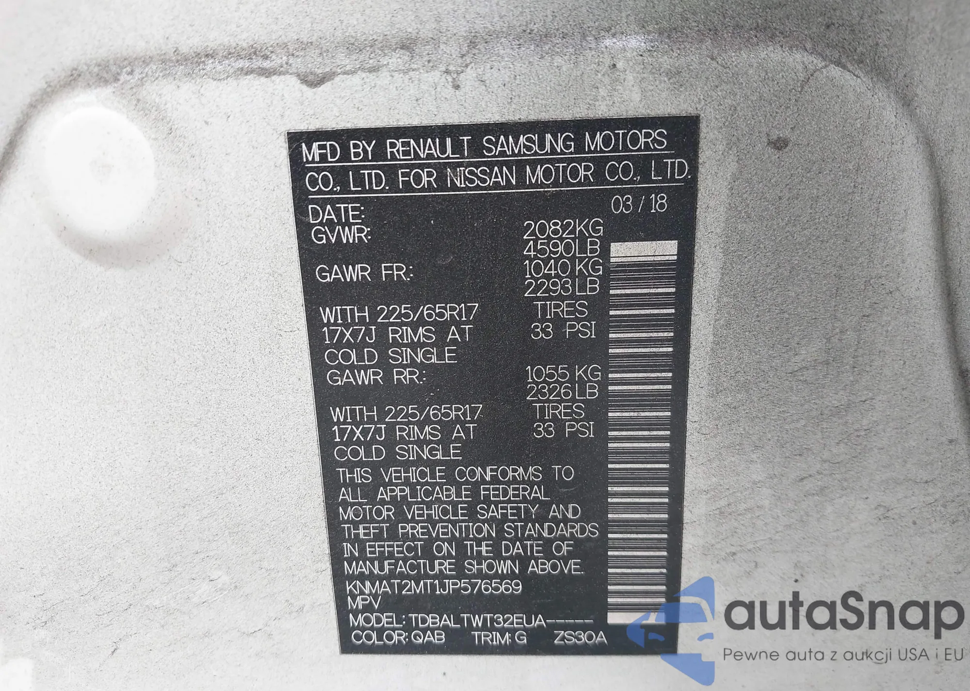 LOT: 43170399 VIN: KNMAT2MT1JP576569