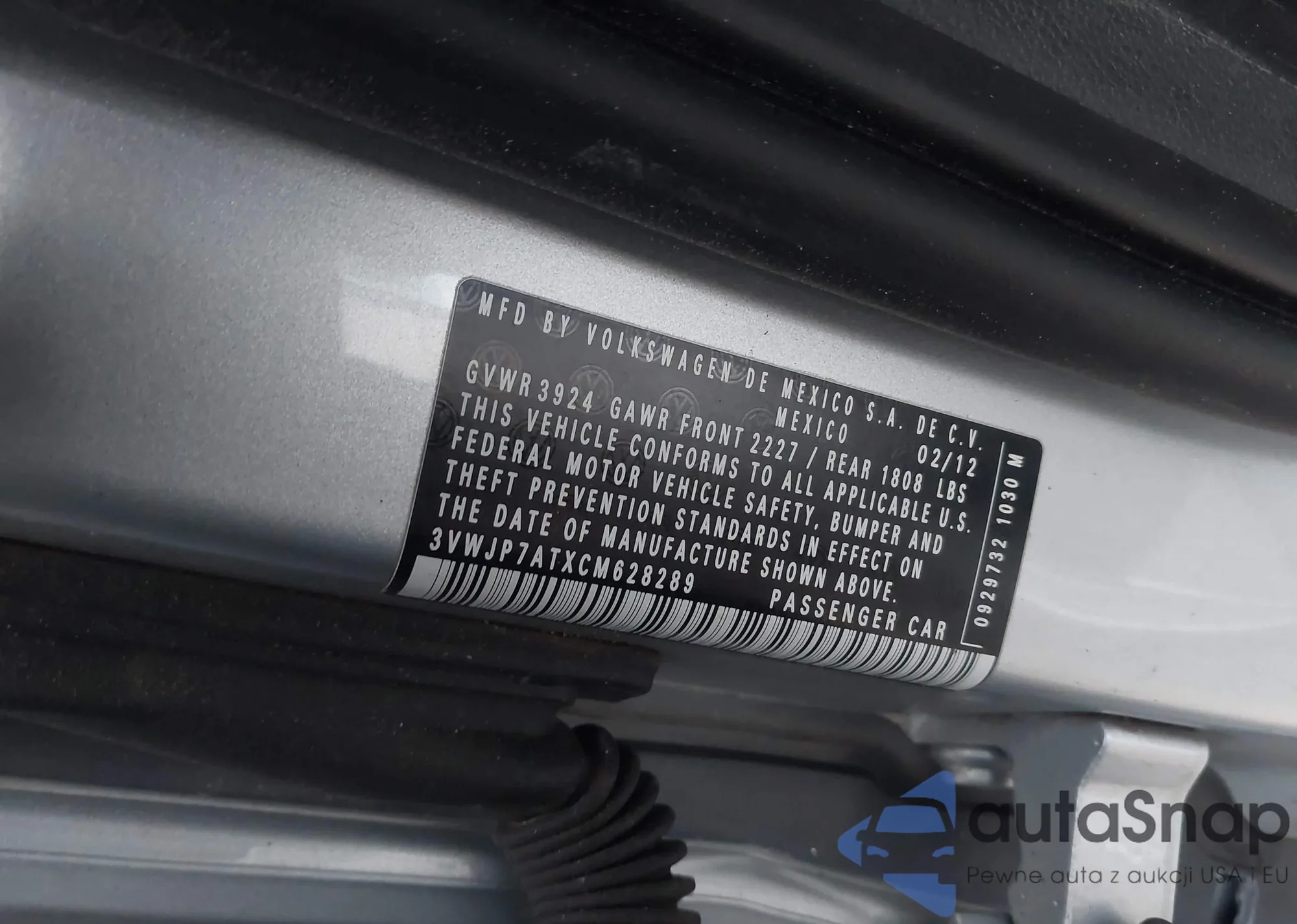 • VIN 3VWJP7ATXCM628289