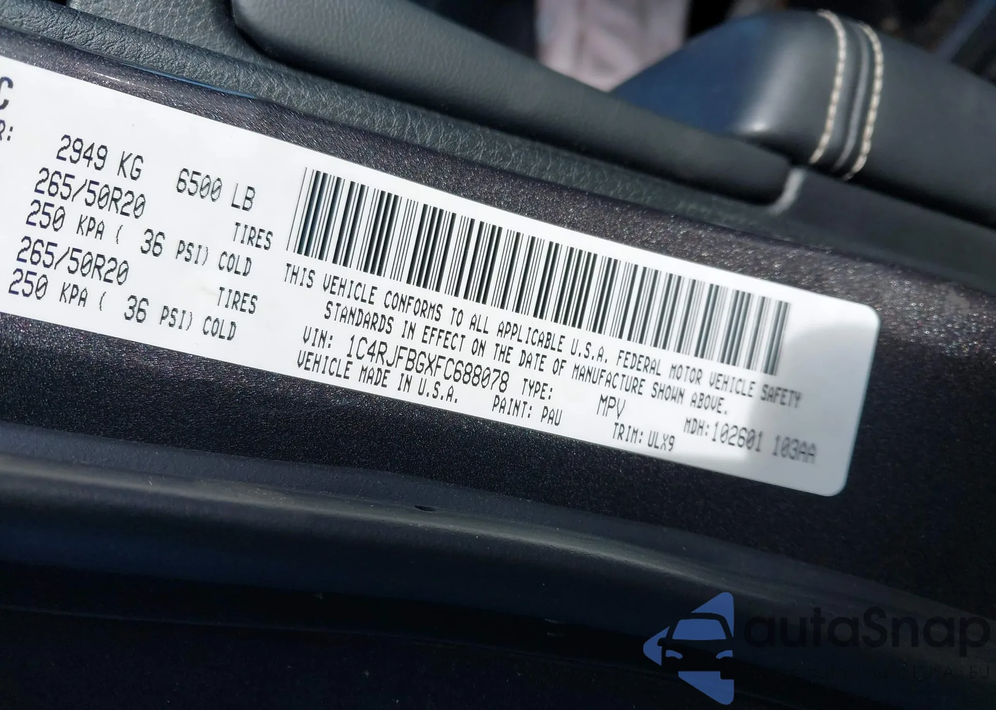 • VIN 1C4RJFBGXFC688078