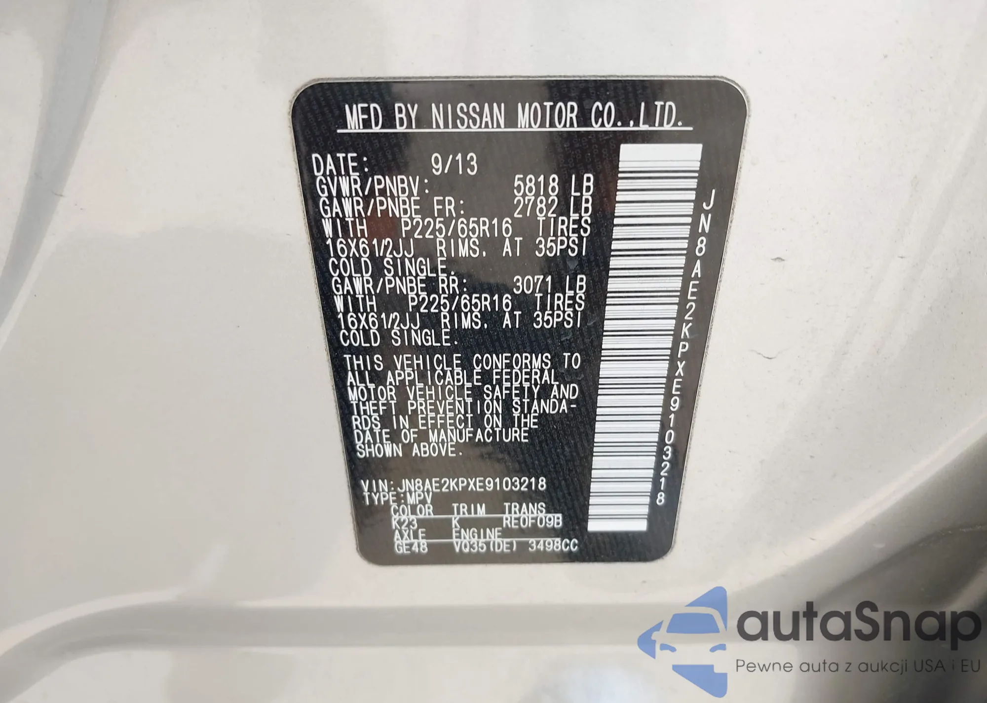 LOT: 43068802 VIN: JN8AE2KPXE9103218