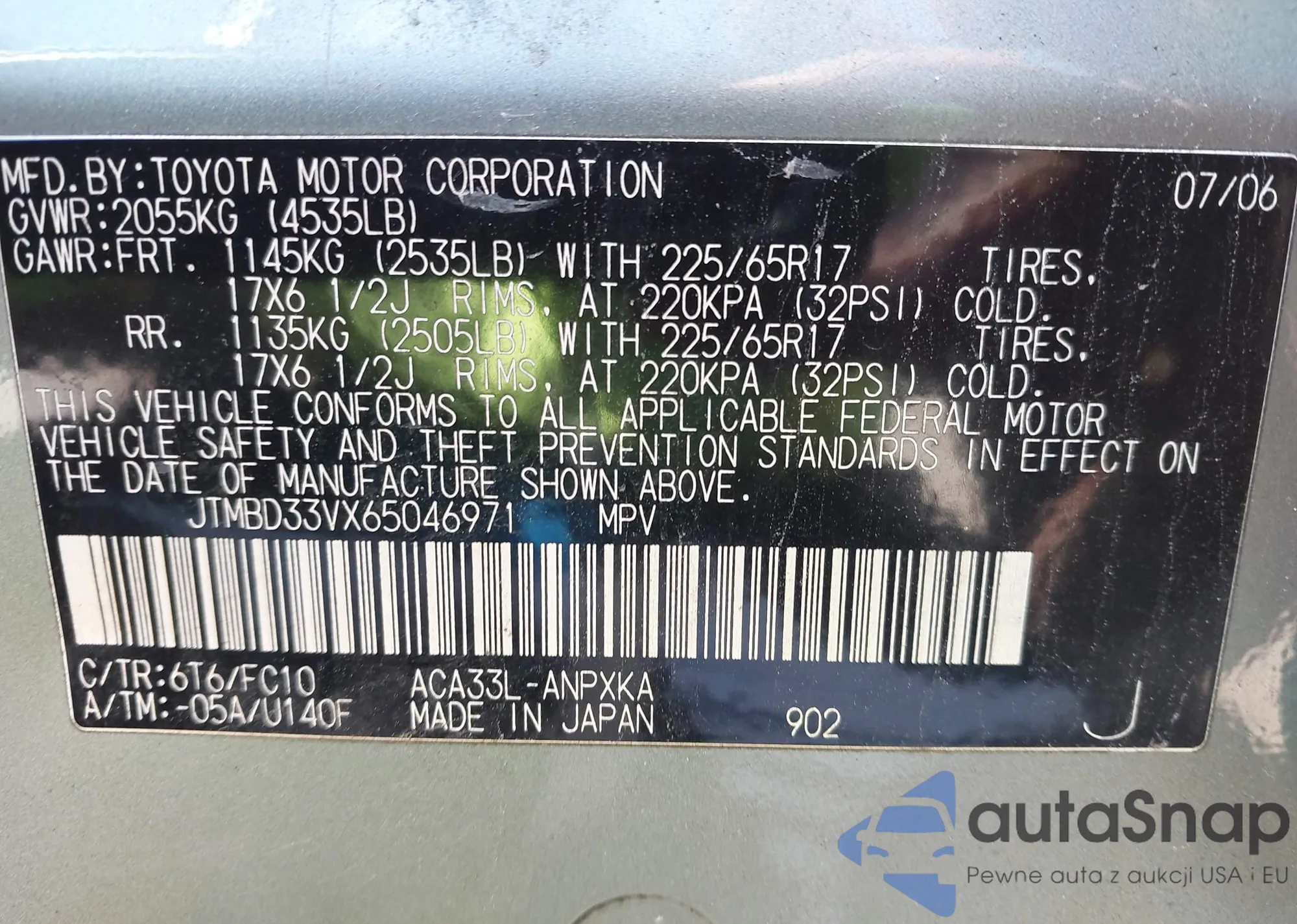 • VIN JTMBD33VX65046971