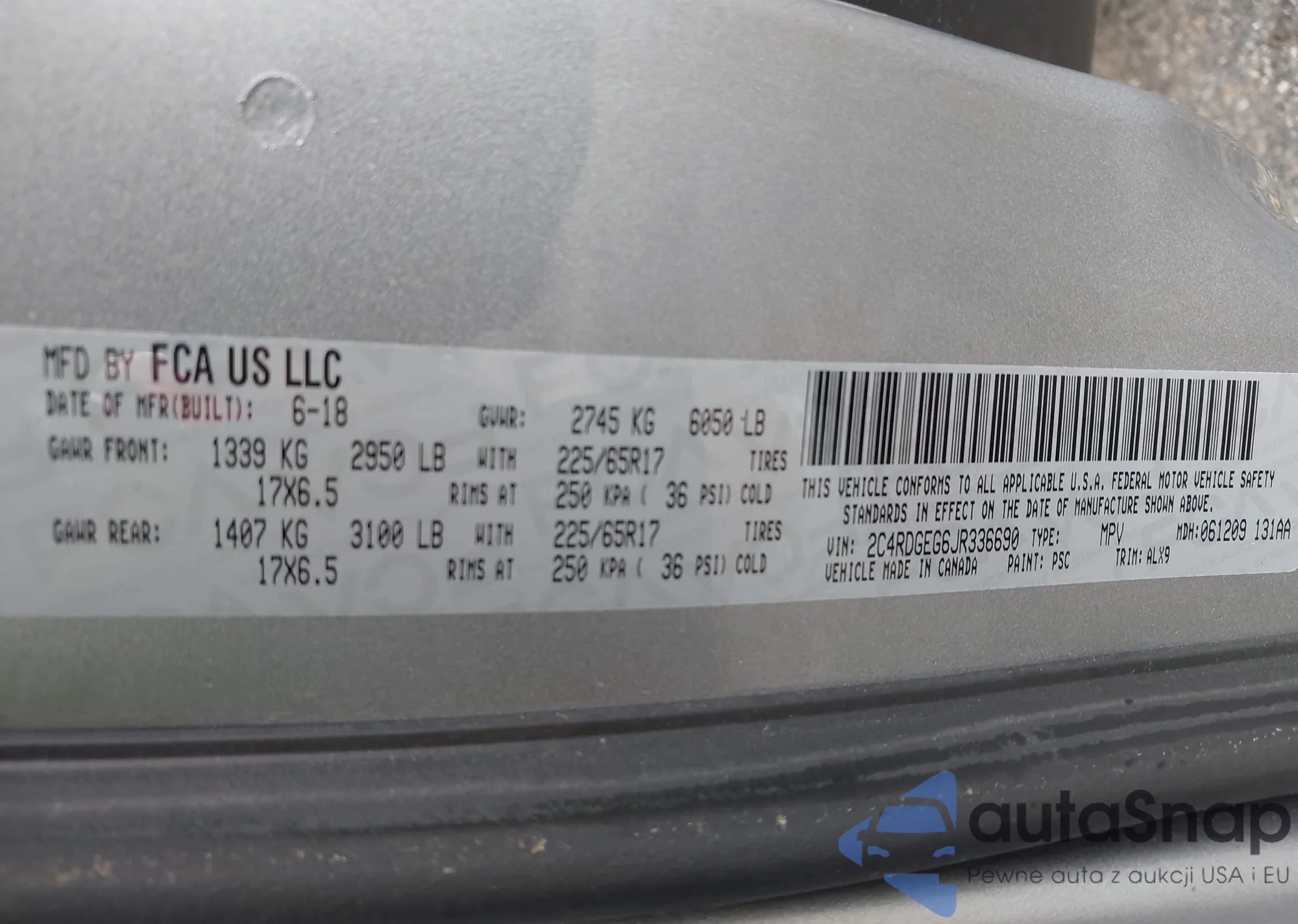 LOT: 43321486 VIN: 2CNDL13F986076846