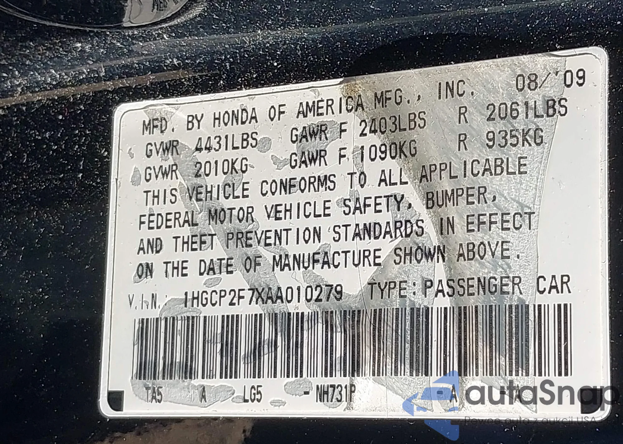 • VIN 5TDBK3EH7DS203327