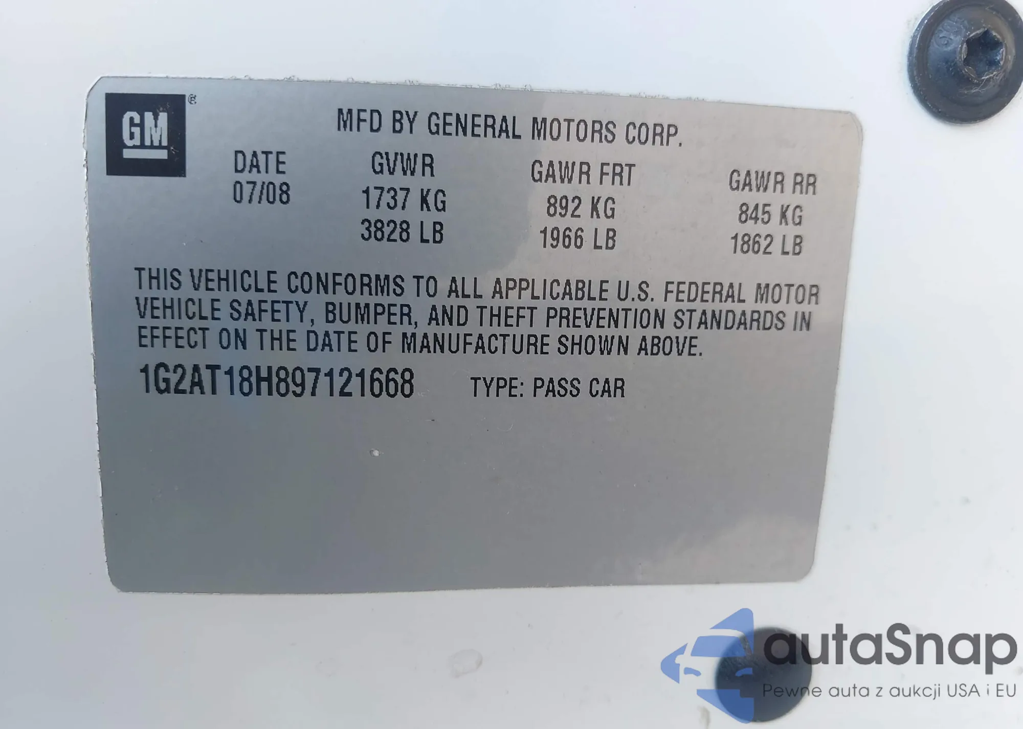 2008 Pontiac Vibe z USA, uszkodzony, nr VIN 5Y2SL65888Z414863