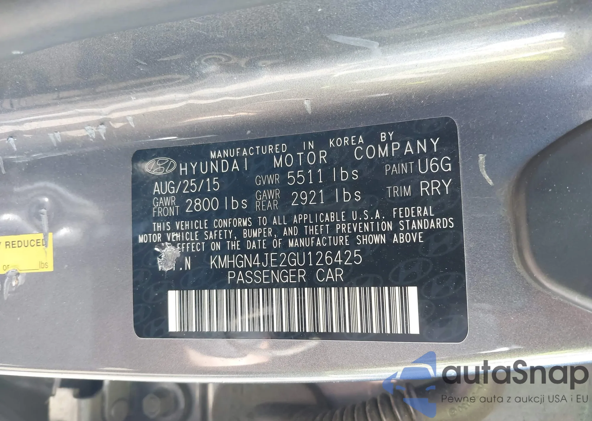 LOT: 42108777 VIN: KMHGN4JE2GU126425