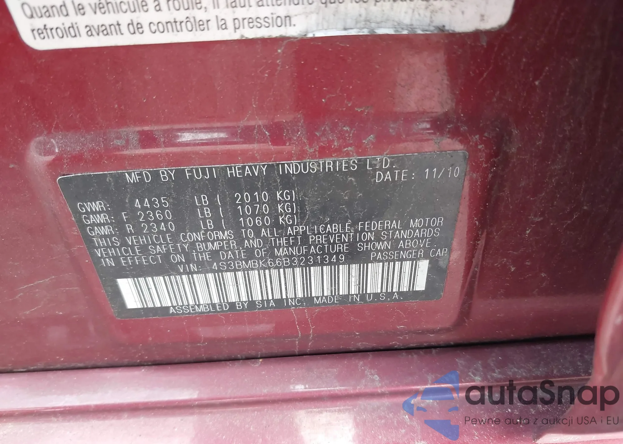 LOT: 42870756 VIN: JN8BT3BB5PW460122