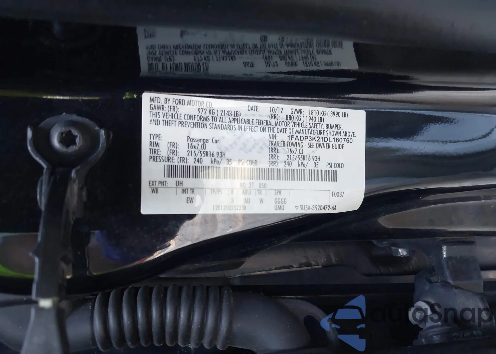 LOT: 42568537 VIN: 1FADP3K21DL180760