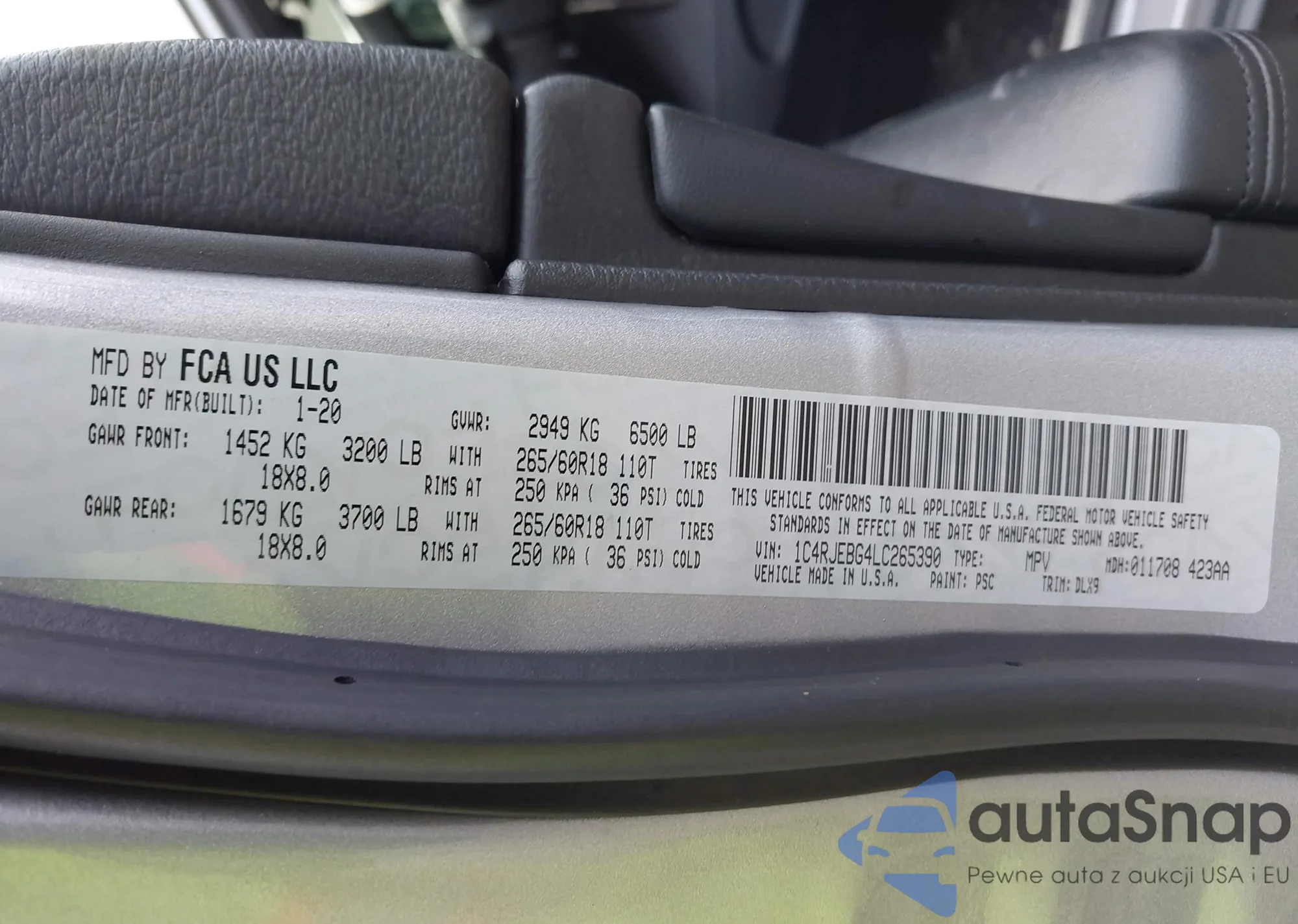LOT: 42716611 VIN: 1C4RJEBG4LC265390
