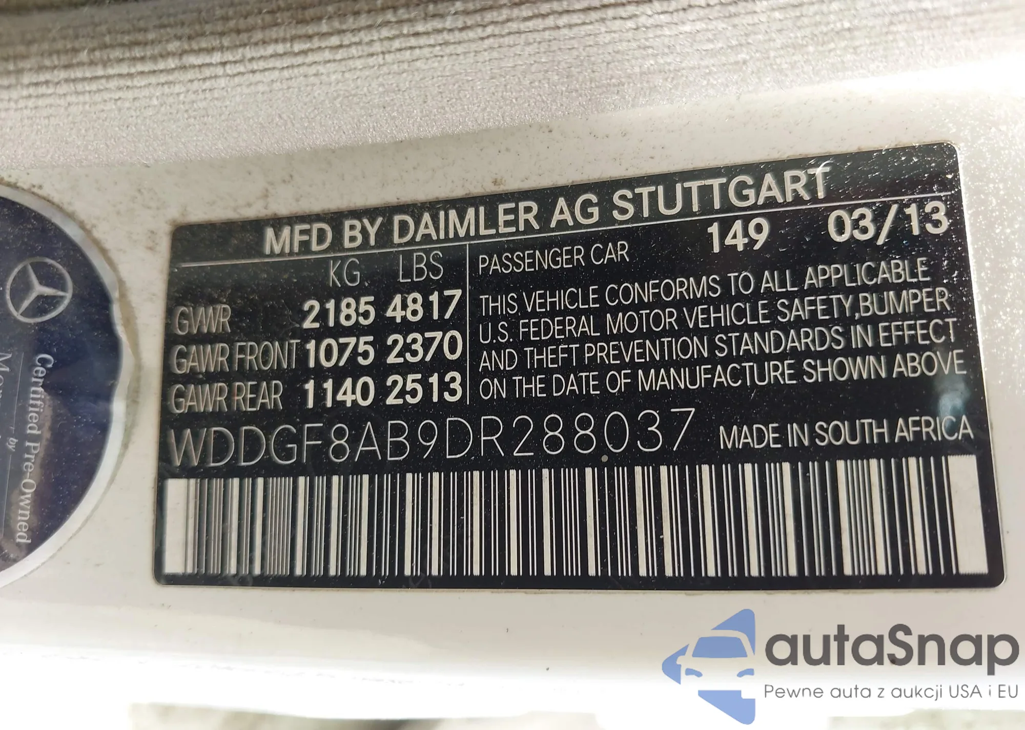 LOT: 42845397 VIN: WDDGF8AB9DR288037
