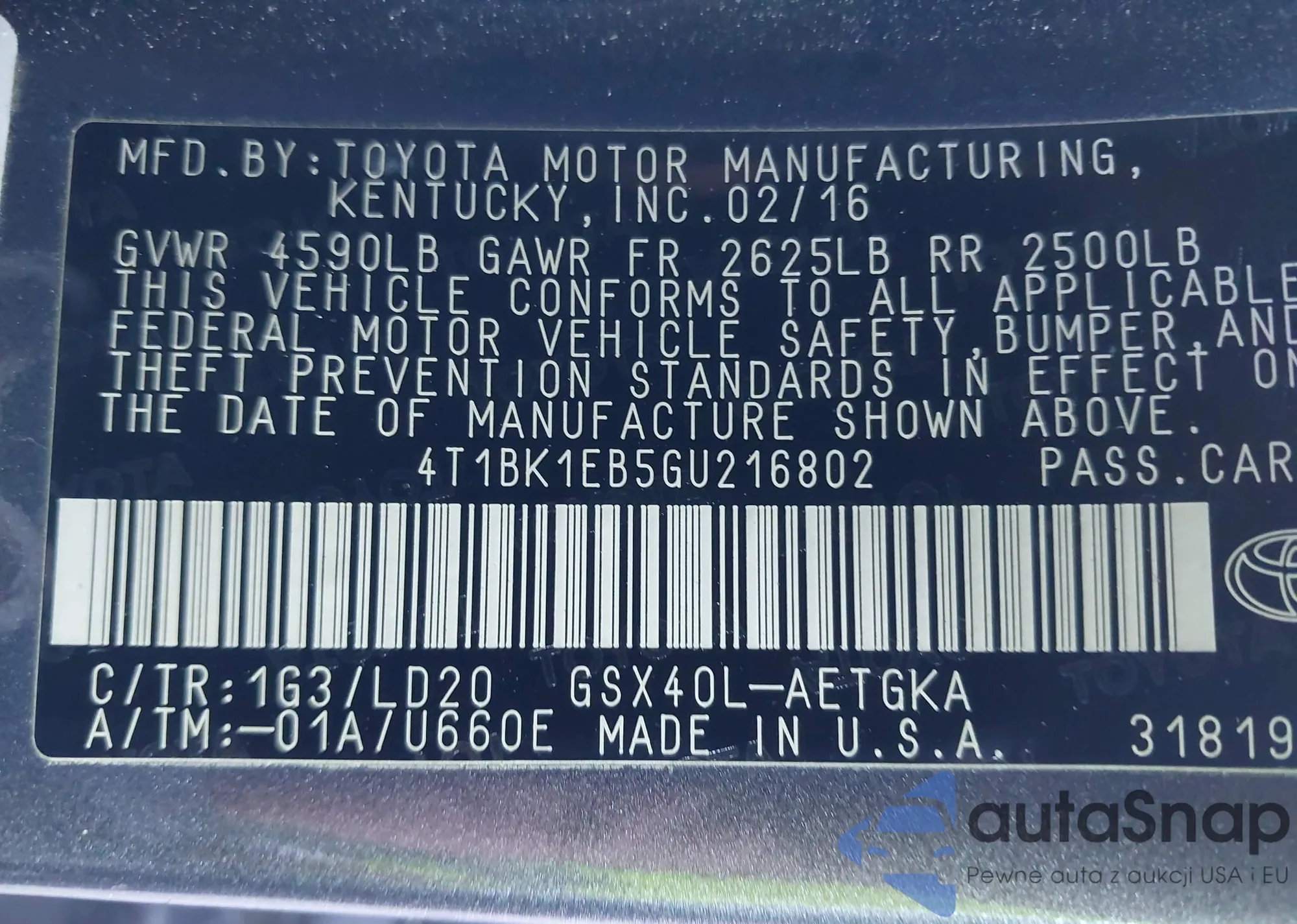 LOT: 43181650 VIN: 2T1BU4EE6AC299297