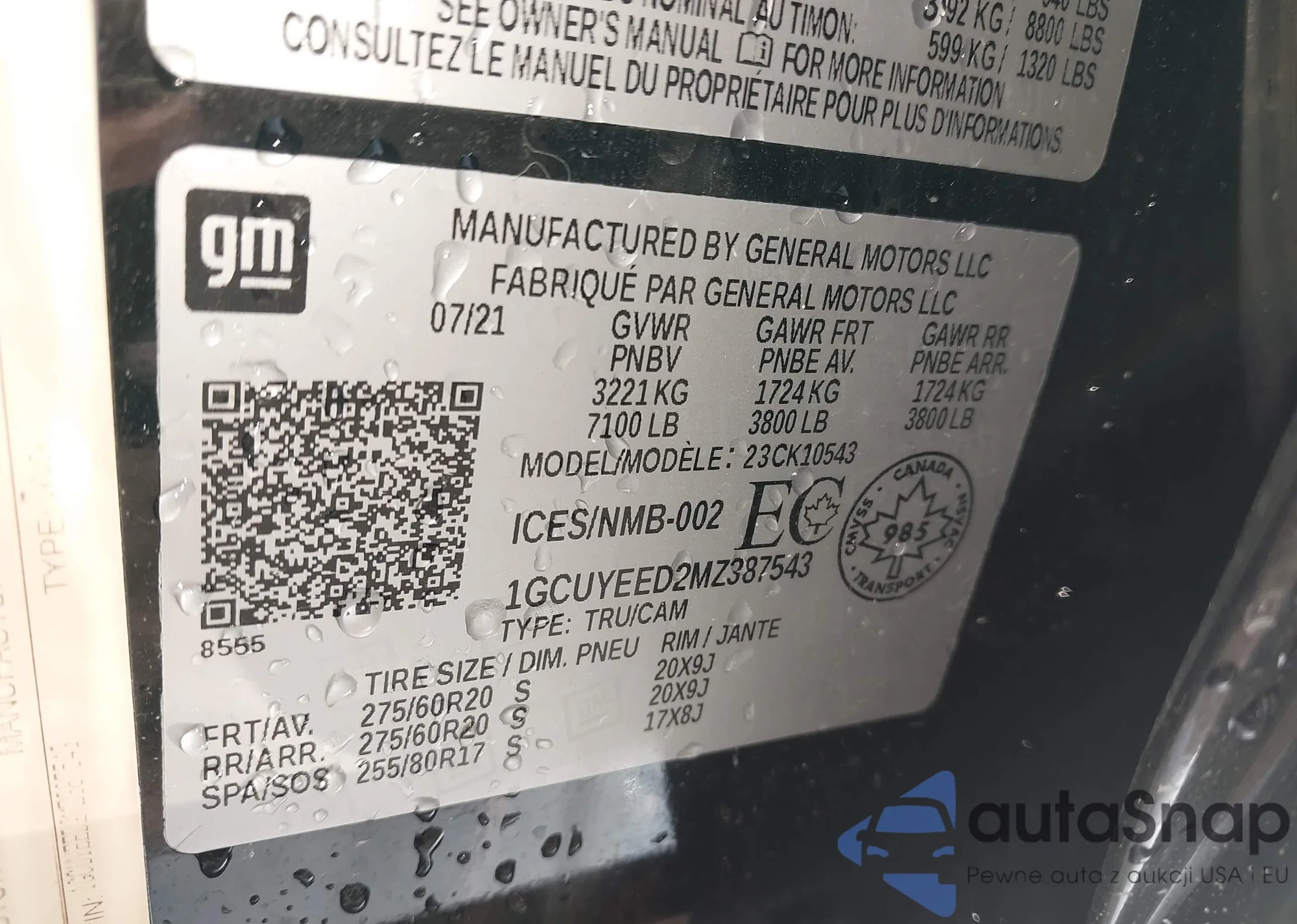 LOT: 43139246 VIN: 1GCUYEED2MZ387543