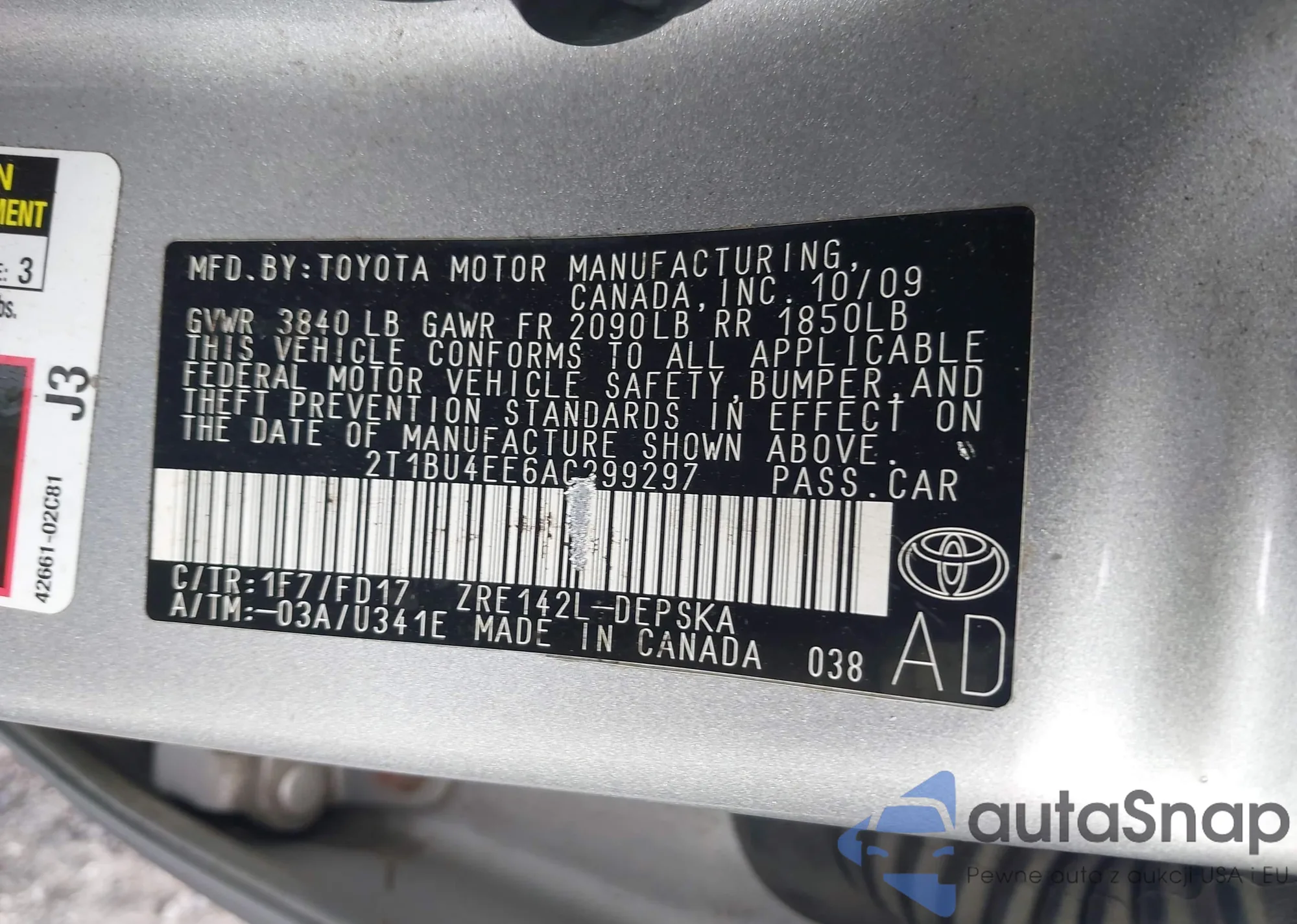 • VIN 2T1BU4EE6AC299297