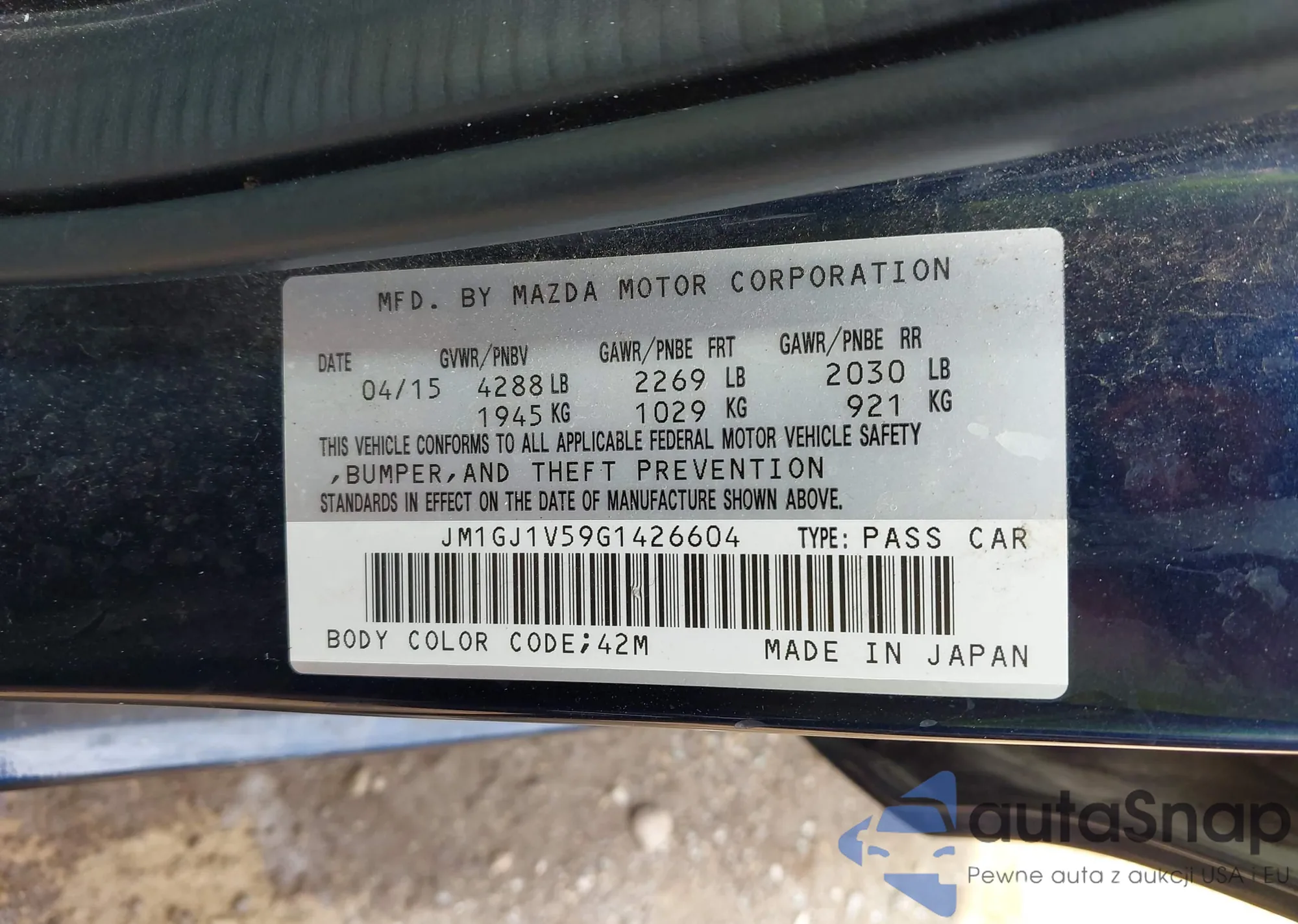 LOT: 43158695 VIN: JM1GJ1V59G1426604