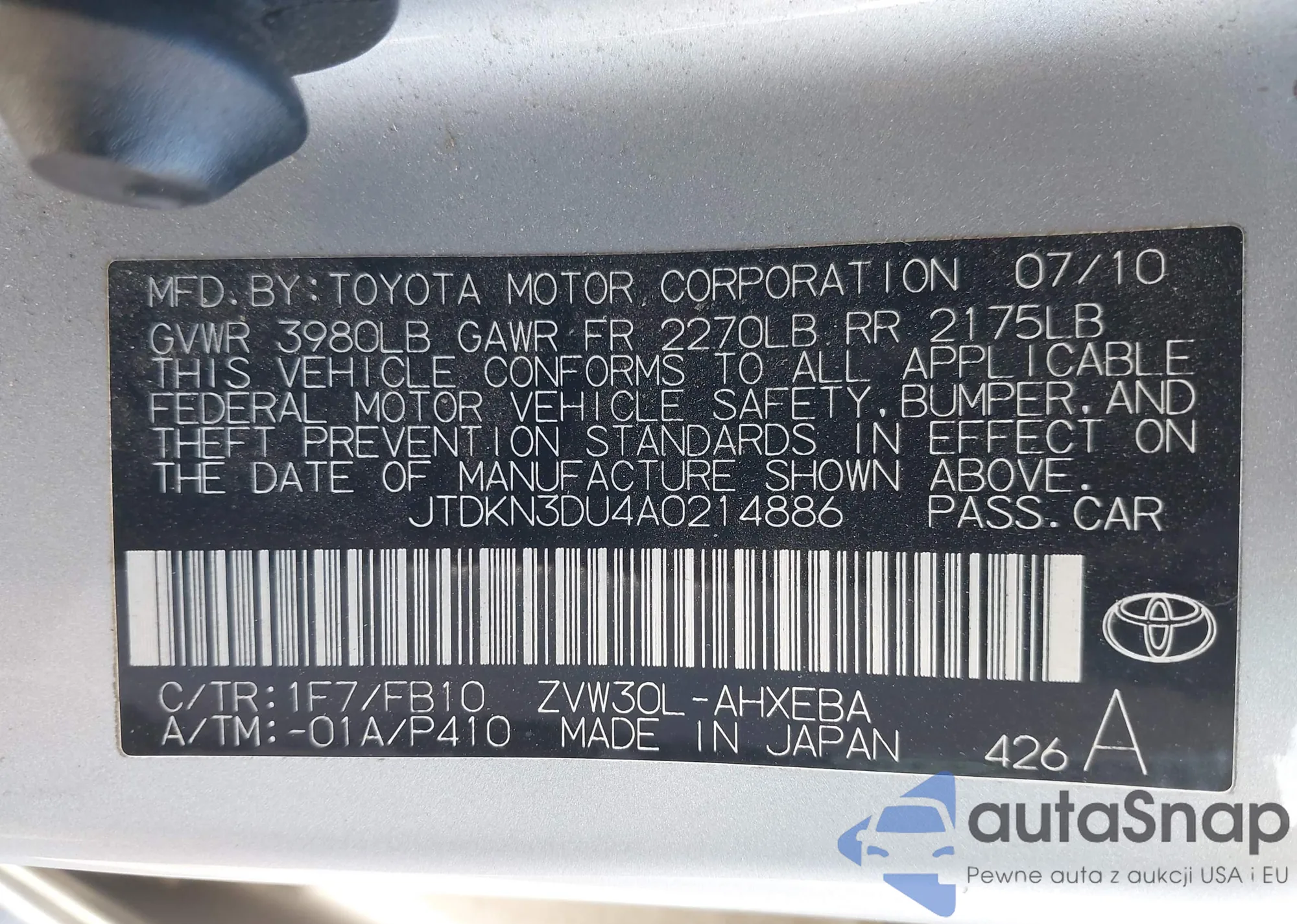 • VIN JTDKN3DU4A0214886