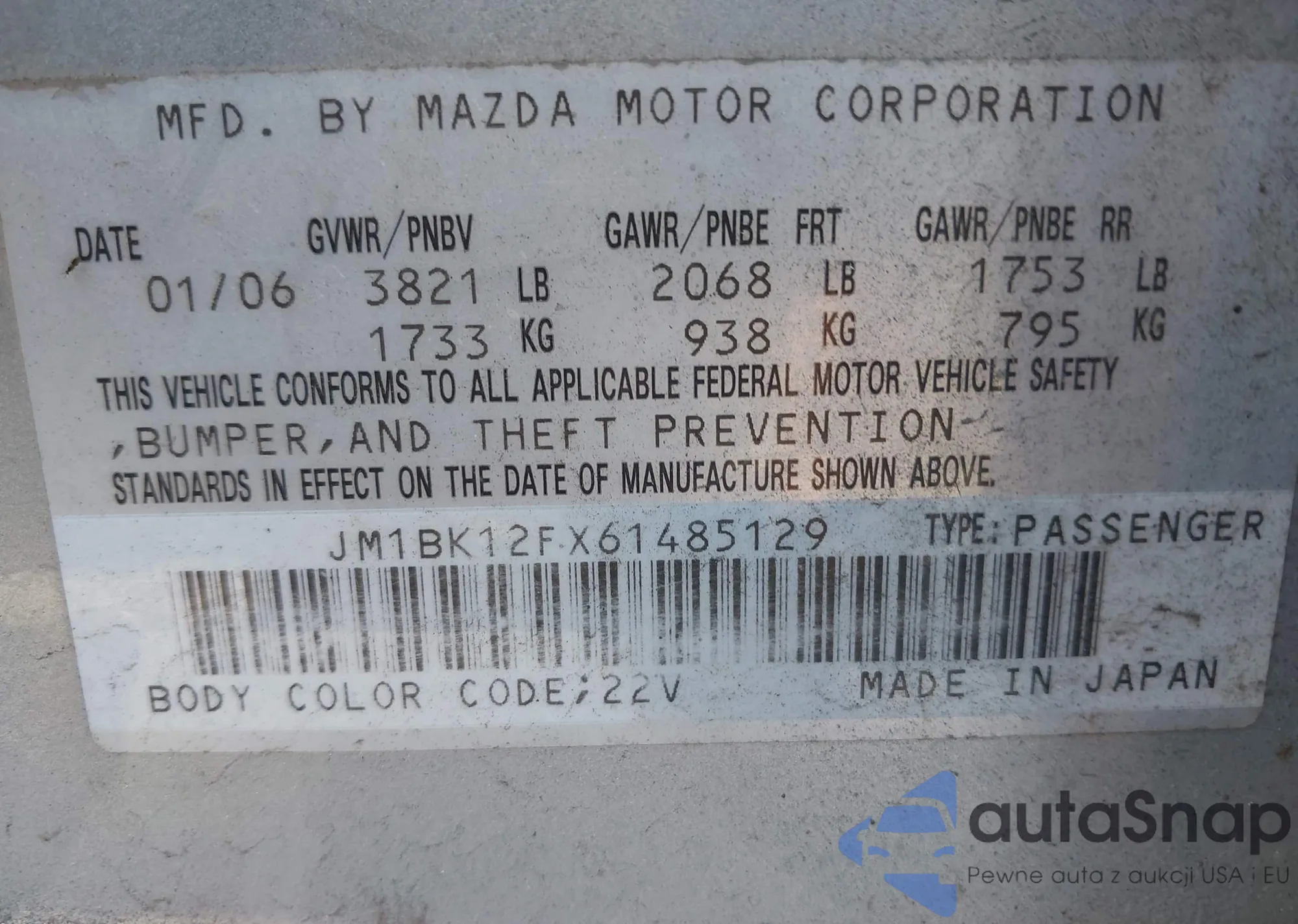 • VIN JM1GJ1V59G1426604