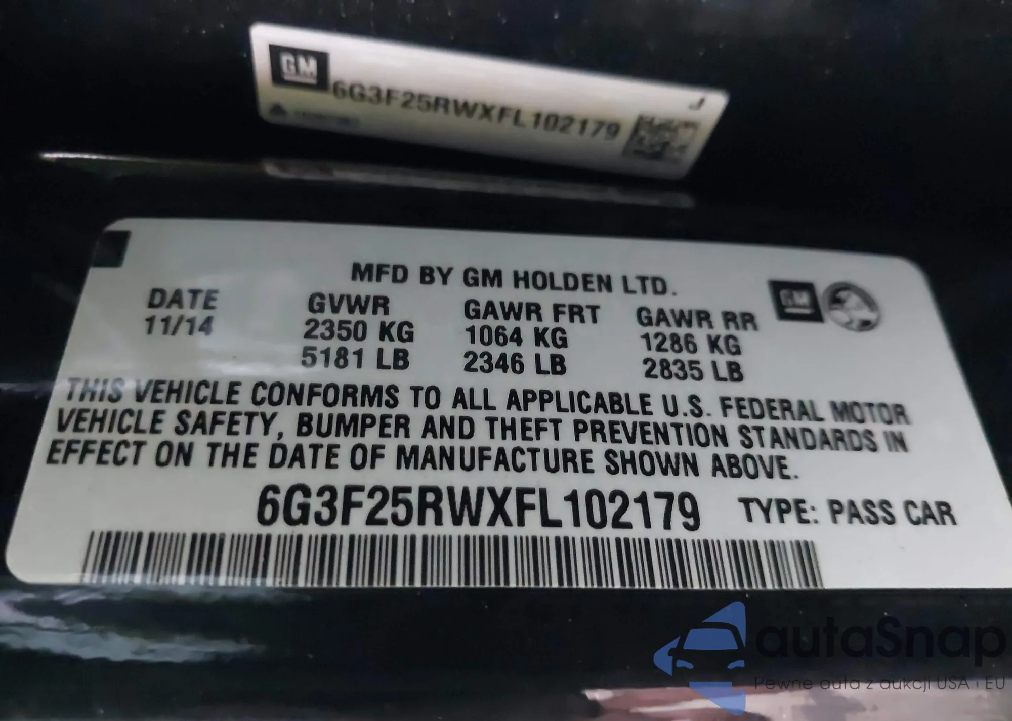 • VIN 6G3F25RWXFL102179