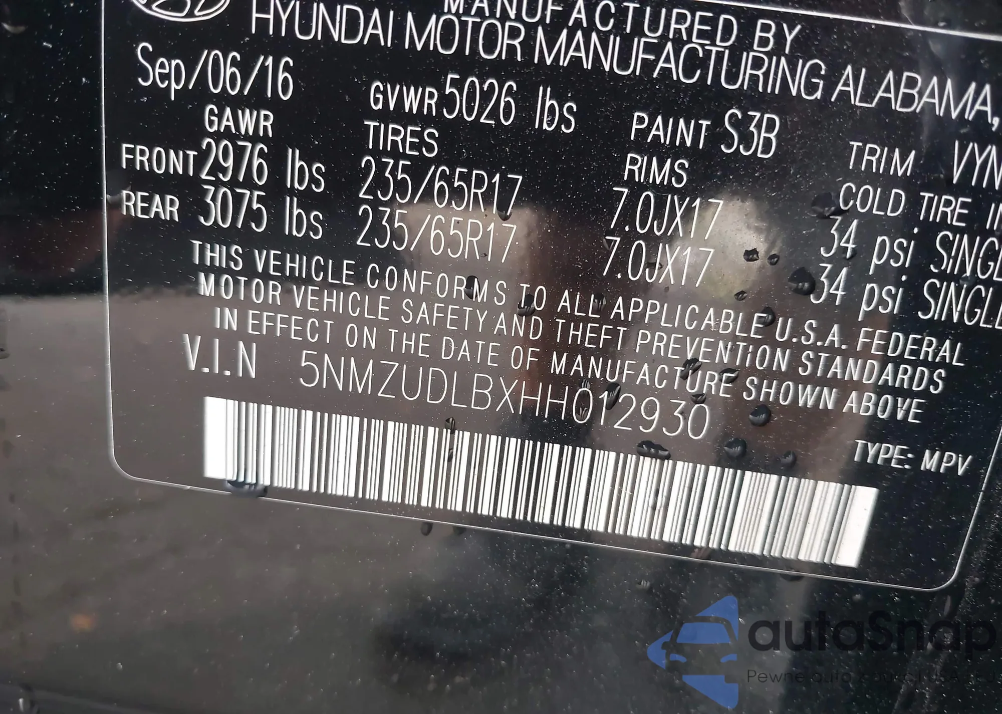 LOT: 43256669 VIN: 2HKRW5H34HH400806