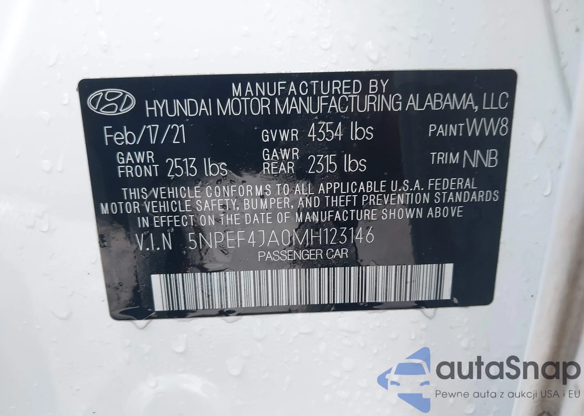 LOT: 43286035 VIN: KMHLM4DJ0SU158146