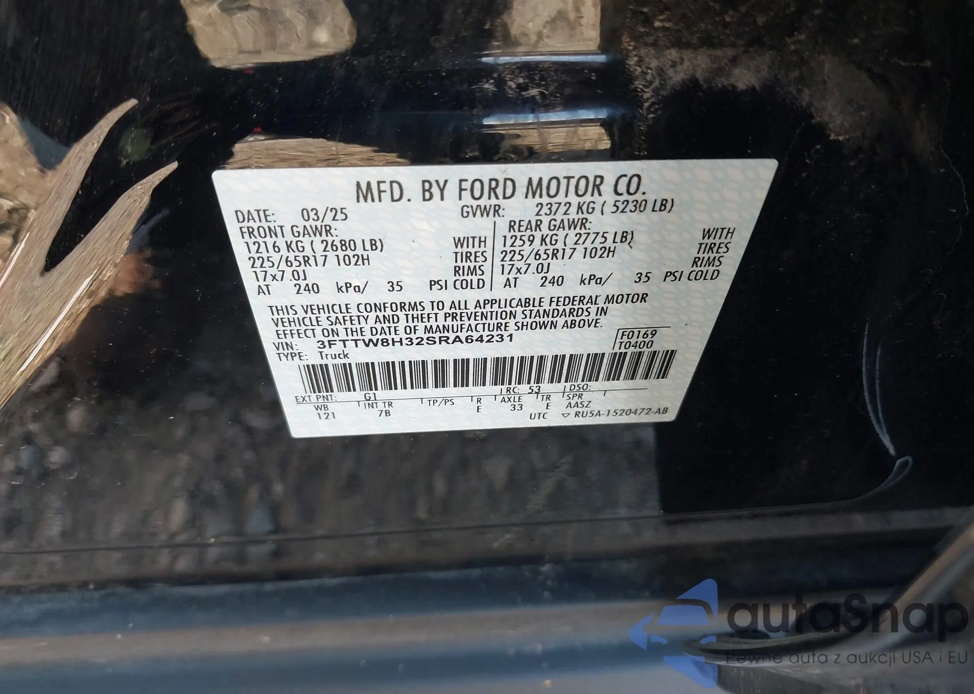 • VIN 3FTTW8H32SRA64231