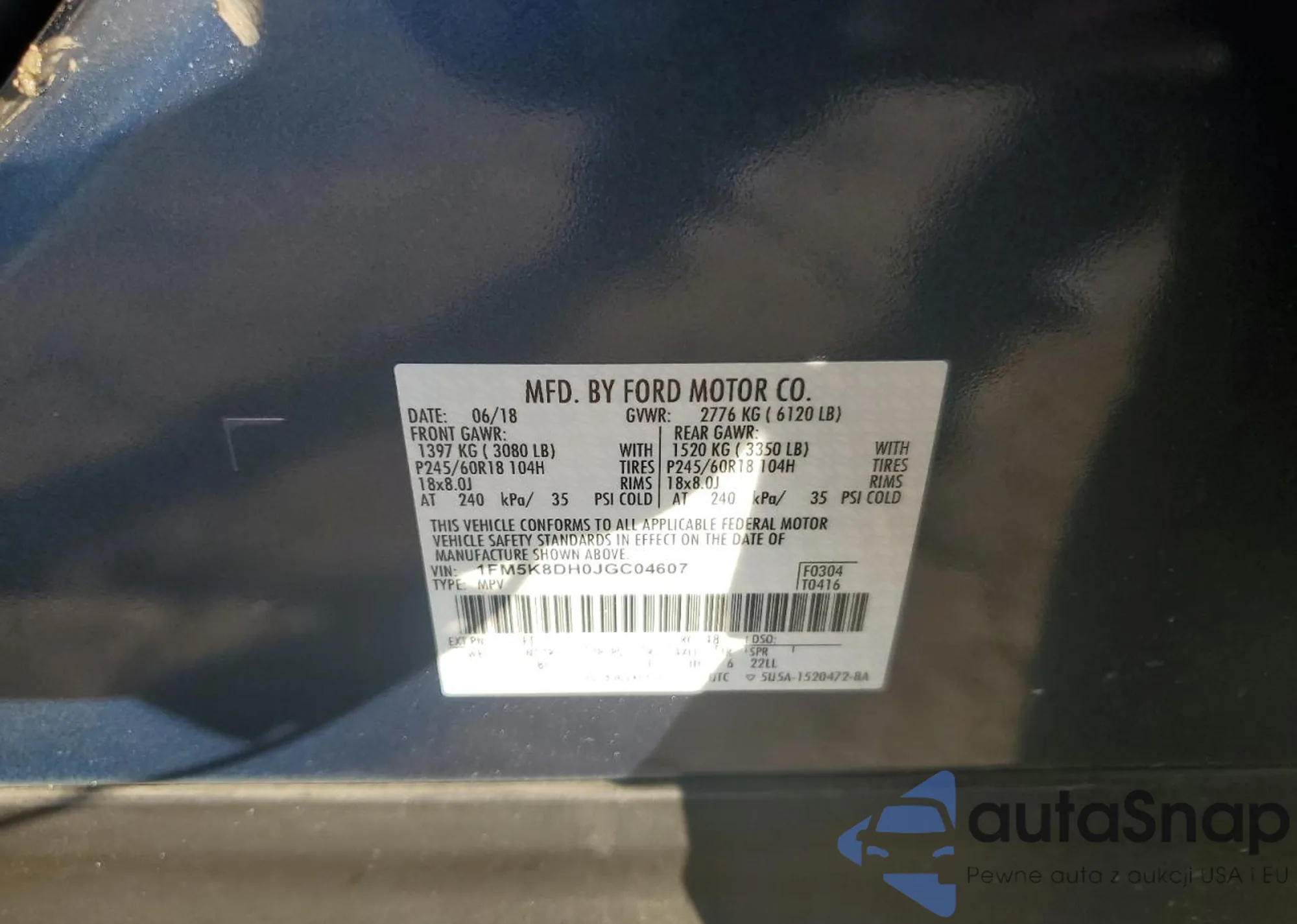 • VIN 1FM5K8DH0JGC04607