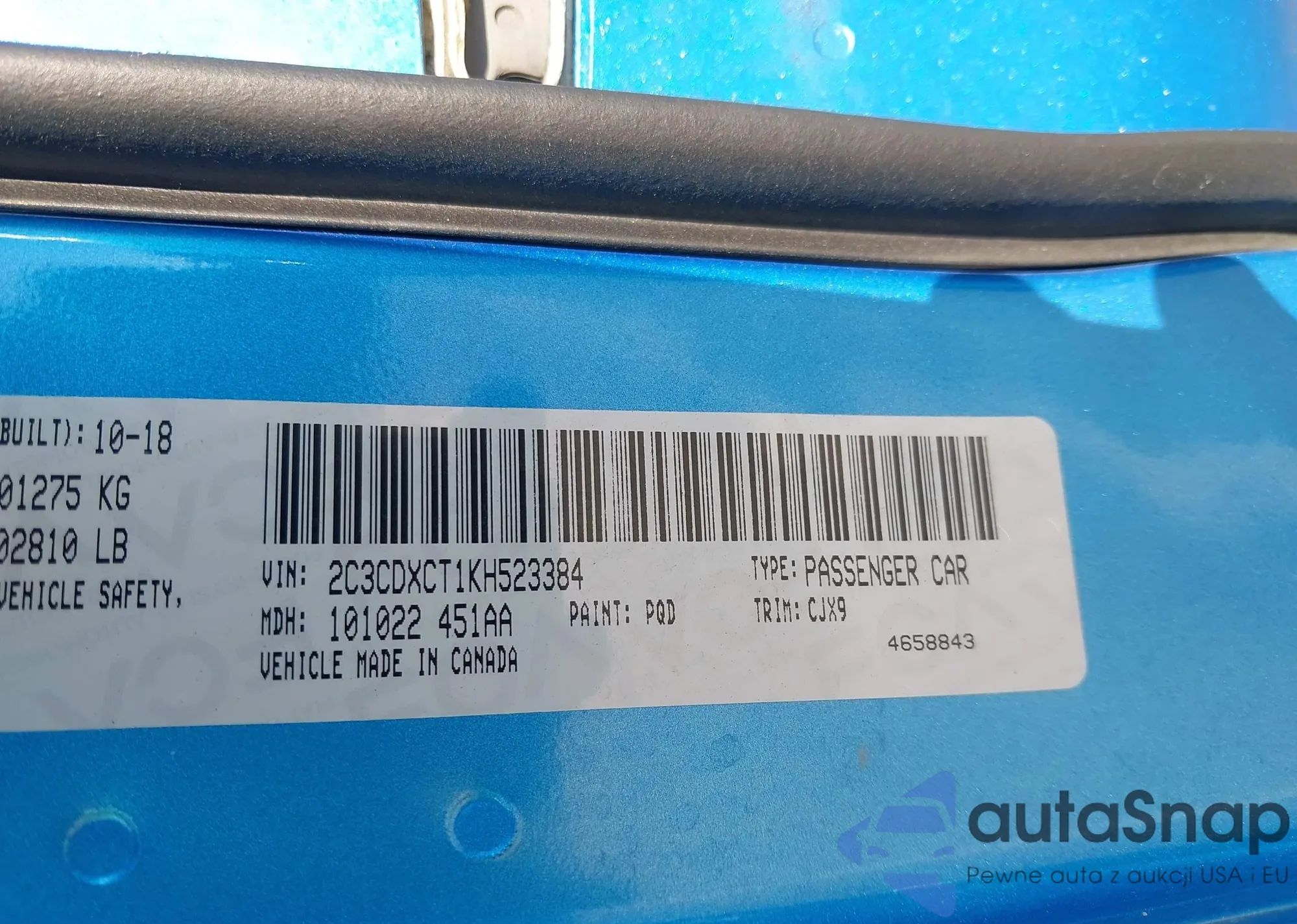 LOT: 42974450 VIN: 5N1DL0MM9KC568797