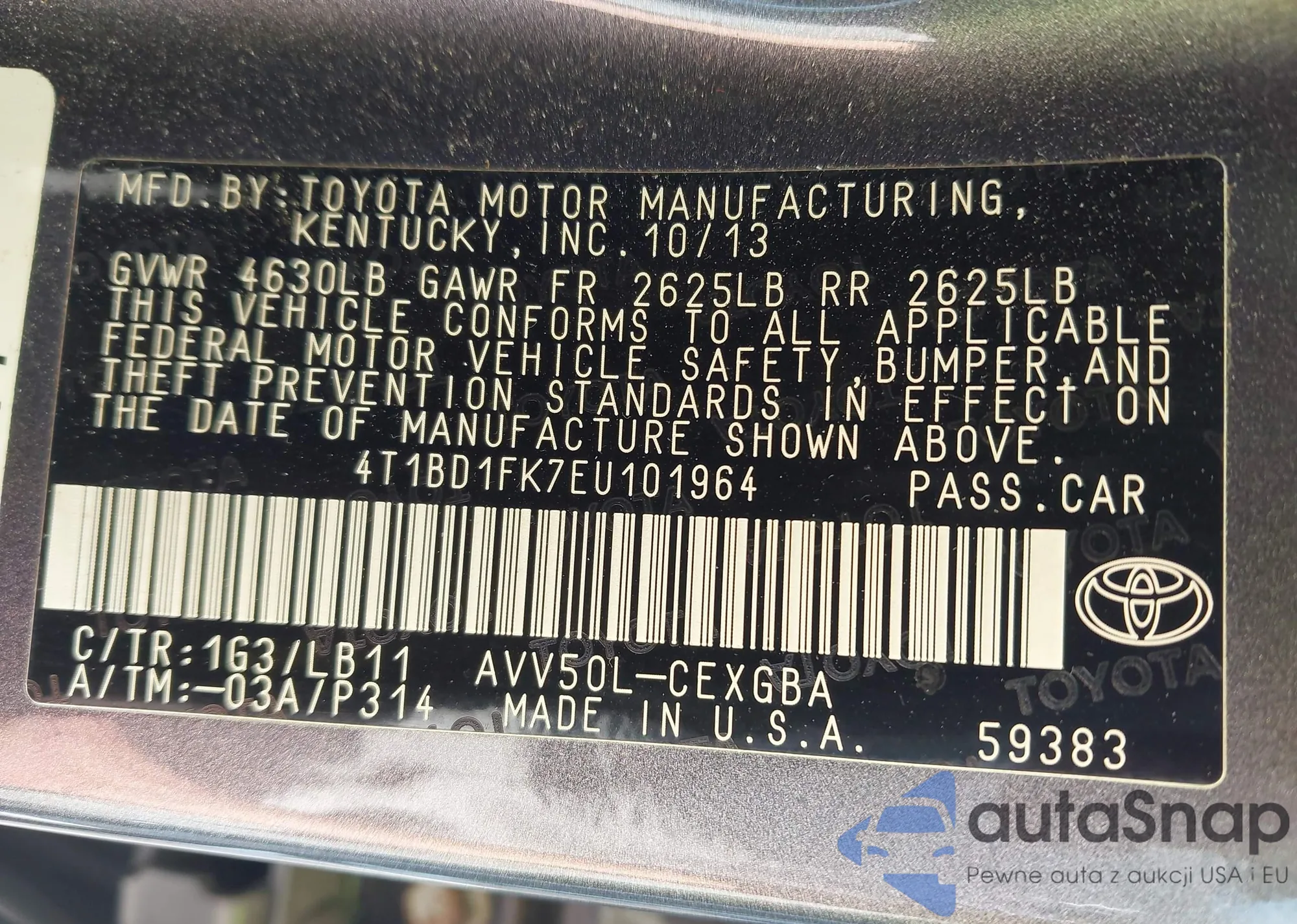 • VIN 4T1BD1FK7EU101964