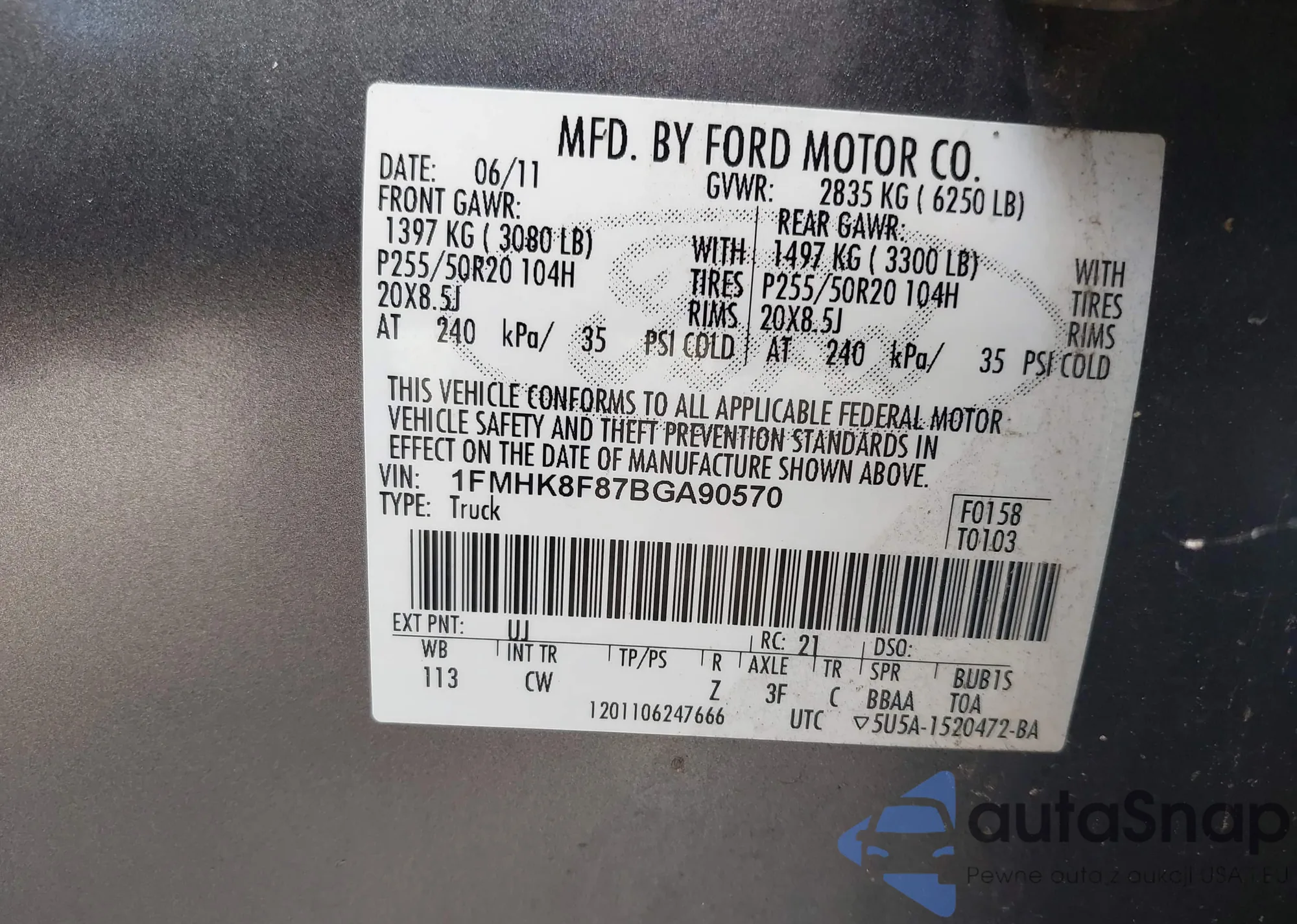 LOT: 42953083 VIN: 1FMCU9D75BKB71536