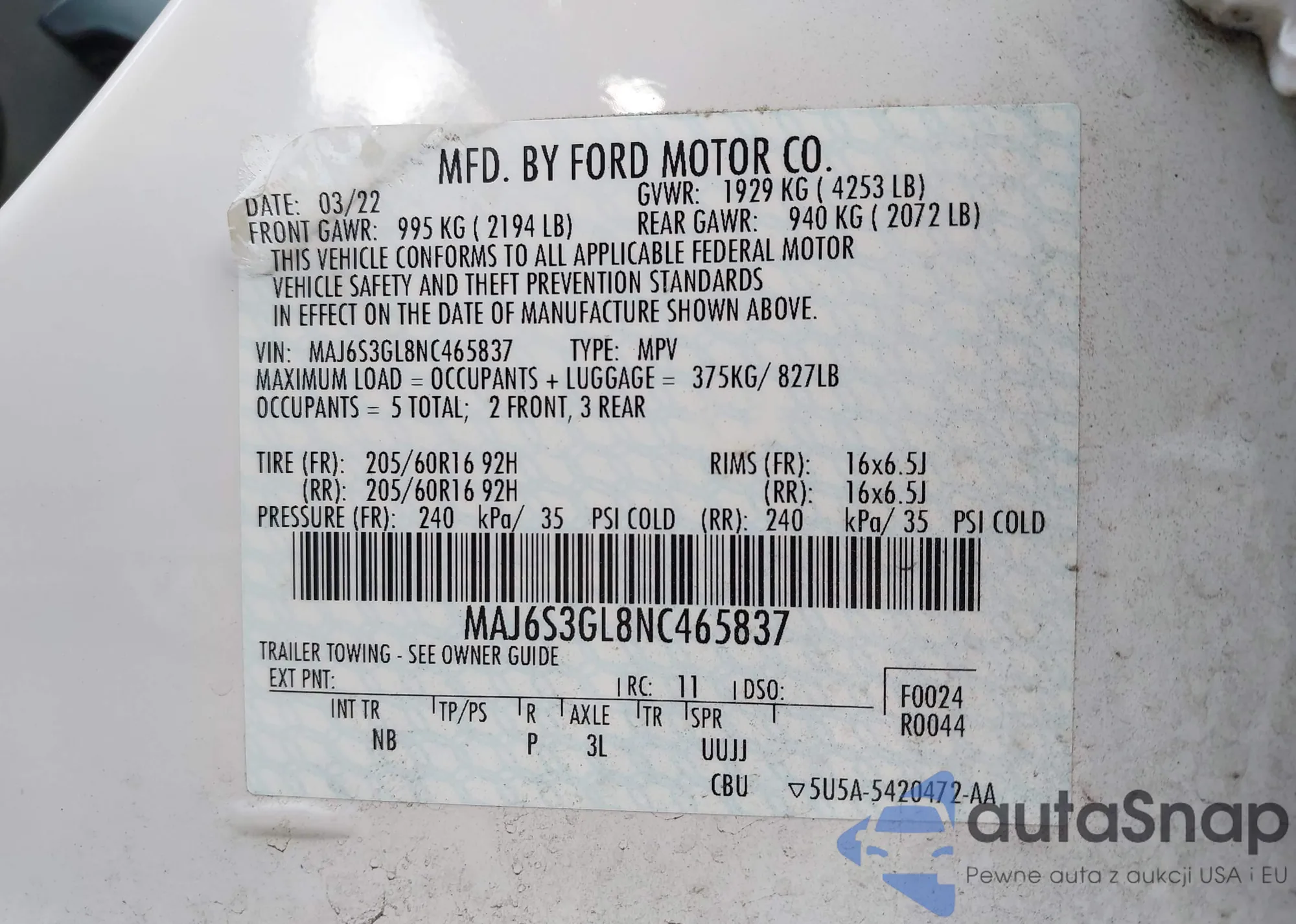• VIN MAJ6S3GL8NC465837