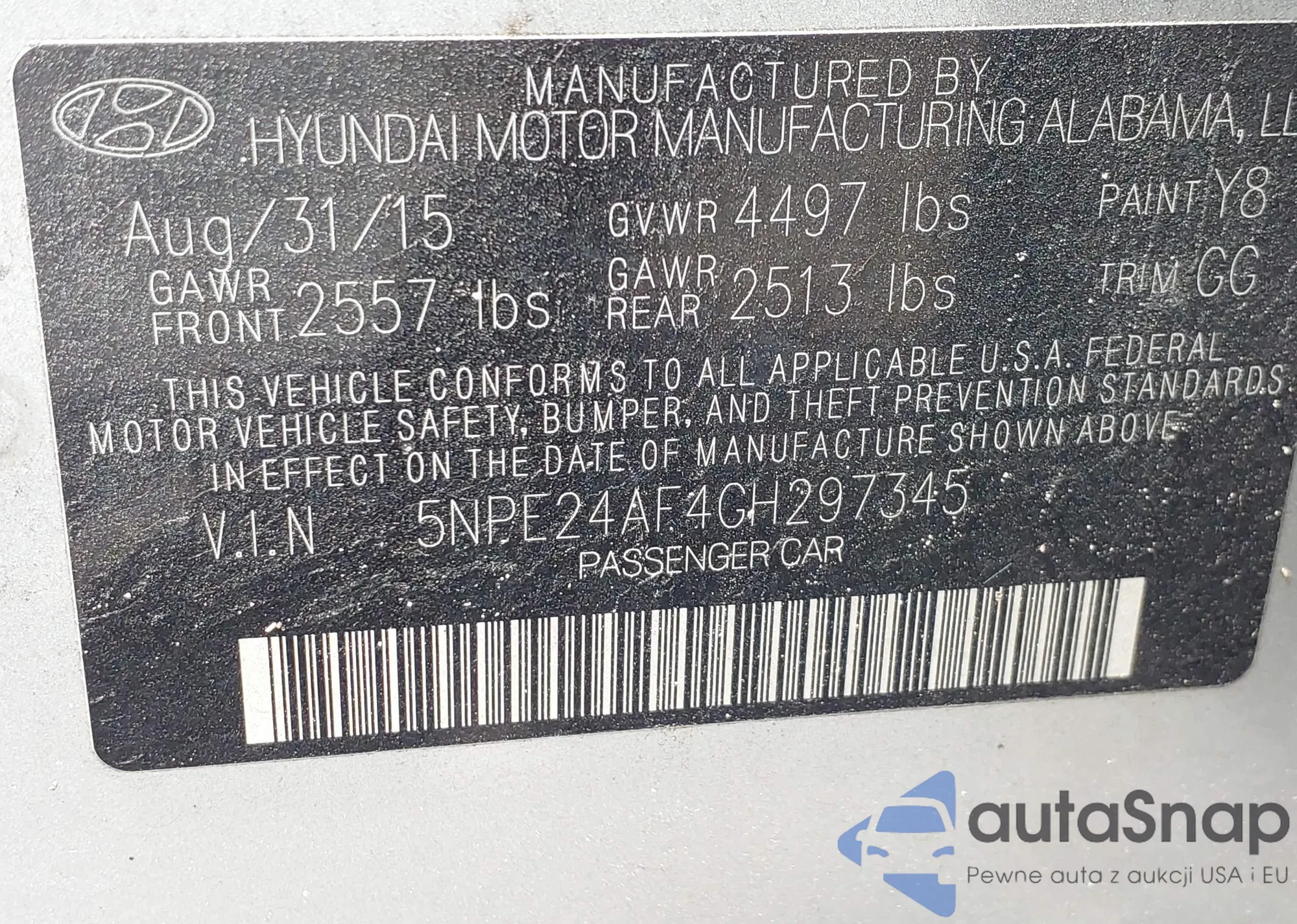 2016 Hyundai Sonata Se z USA, uszkodzony, nr VIN 5NPE24AF4GH297345