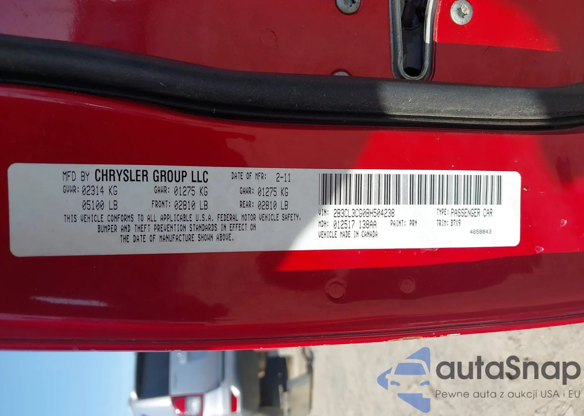• VIN 2B3CL3CG0BH504238