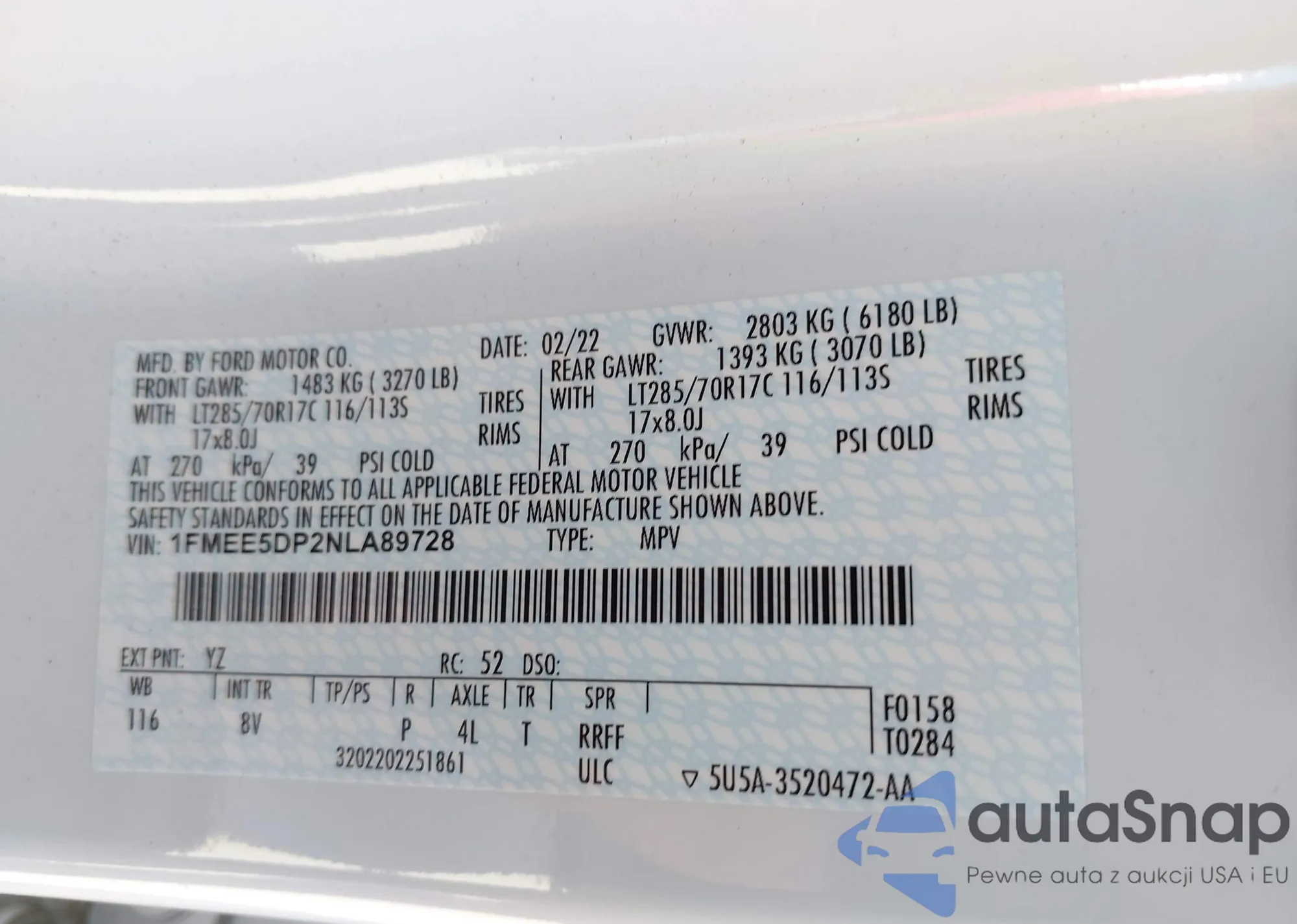 • VIN 1FMEE5DP2NLA89728