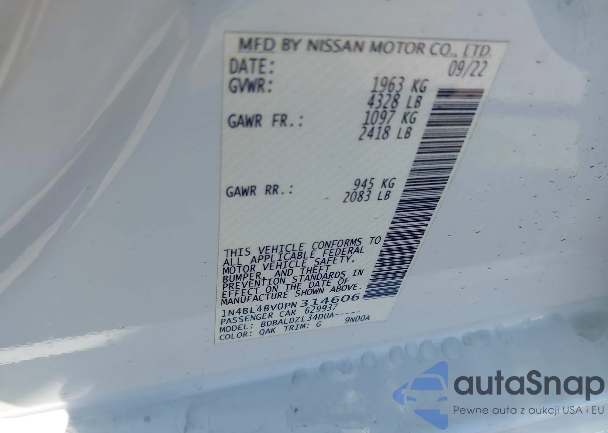 LOT: 43221801 VIN: 1HGCV1F49NA077130