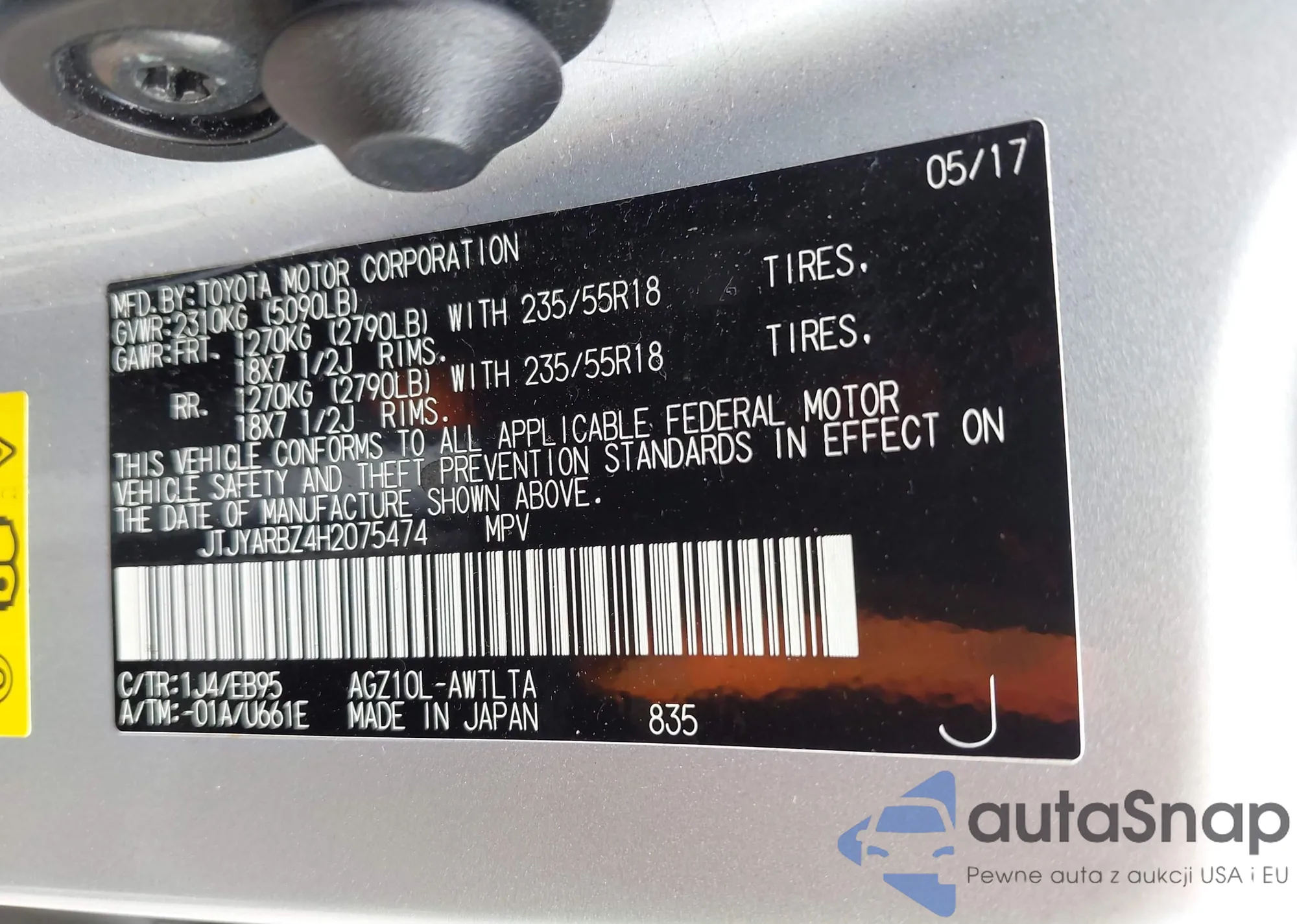 LOT: 43105730 VIN: JTJYARBZ4H2075474
