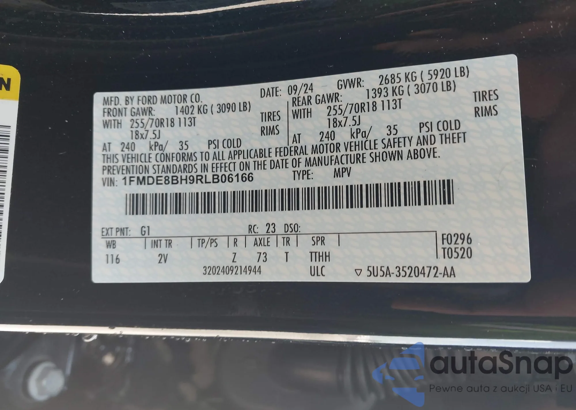 • VIN 1FMDE8BH9RLB06166