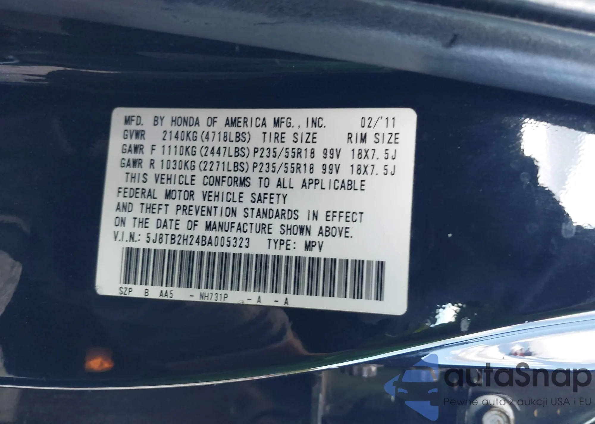 • VIN 5J8TB2H24BA005323