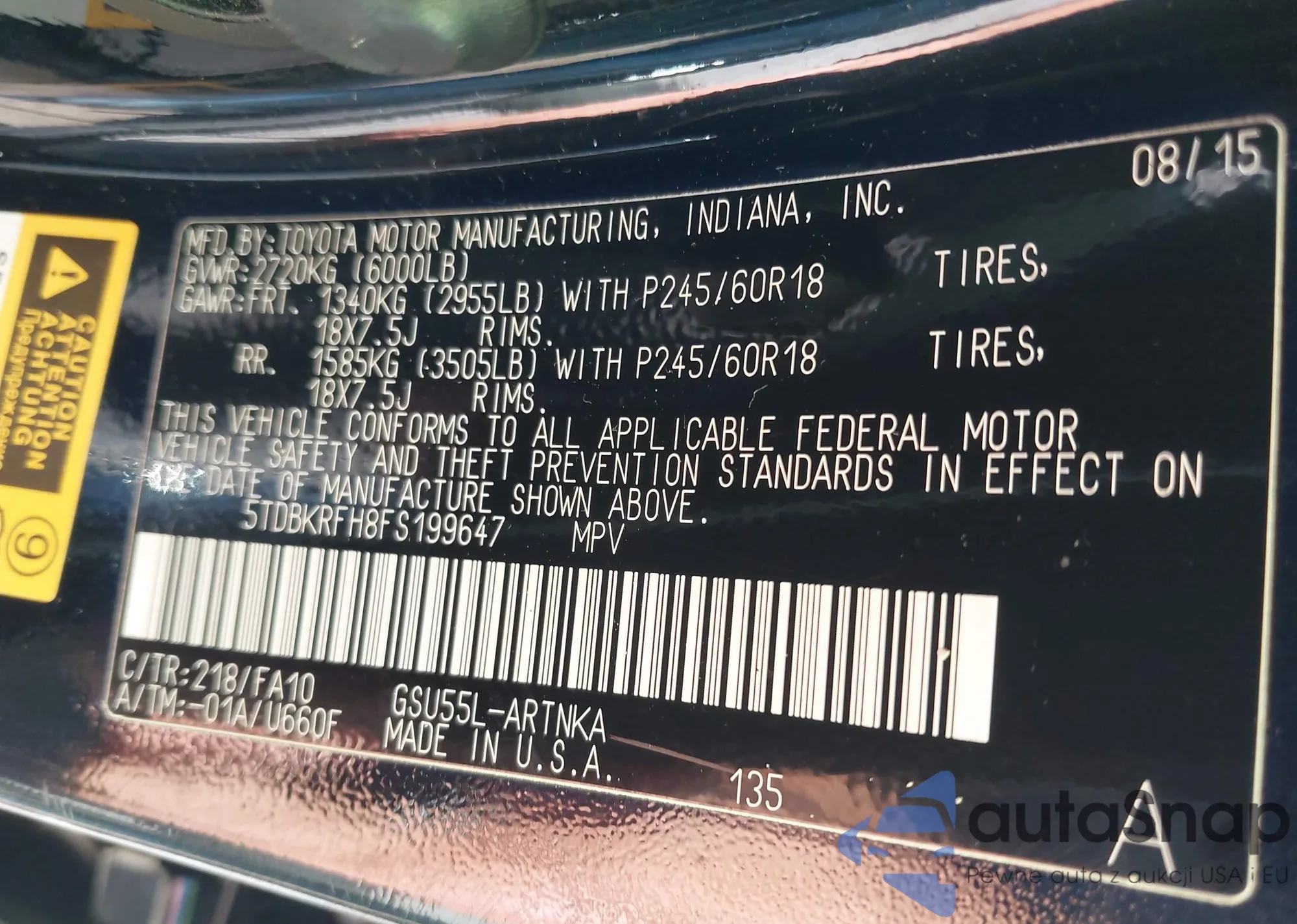LOT: 43276630 VIN: 5TDBKRFH8FS199647