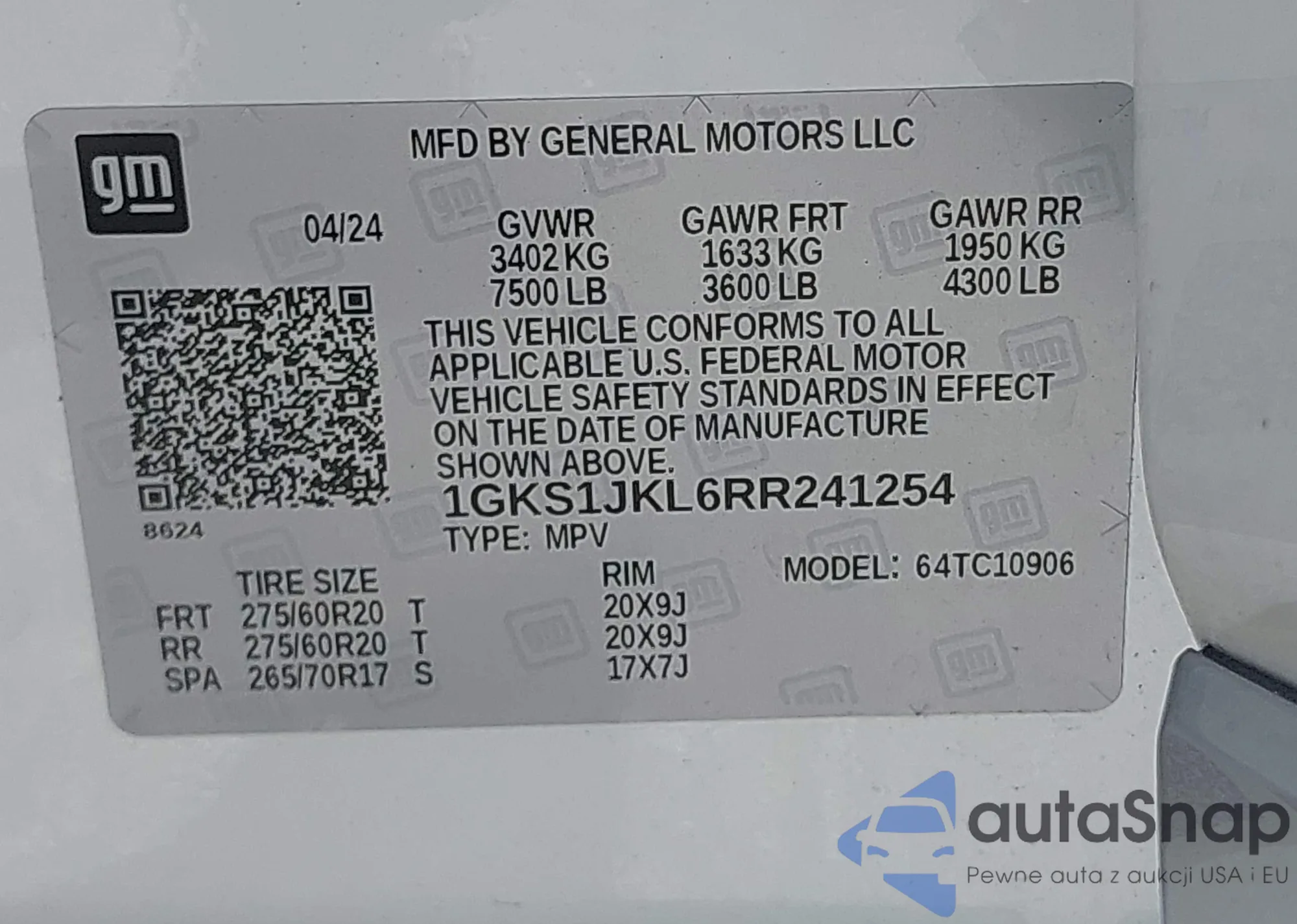 LOT: 43364570 VIN: 1GKS1JKL6RR241254