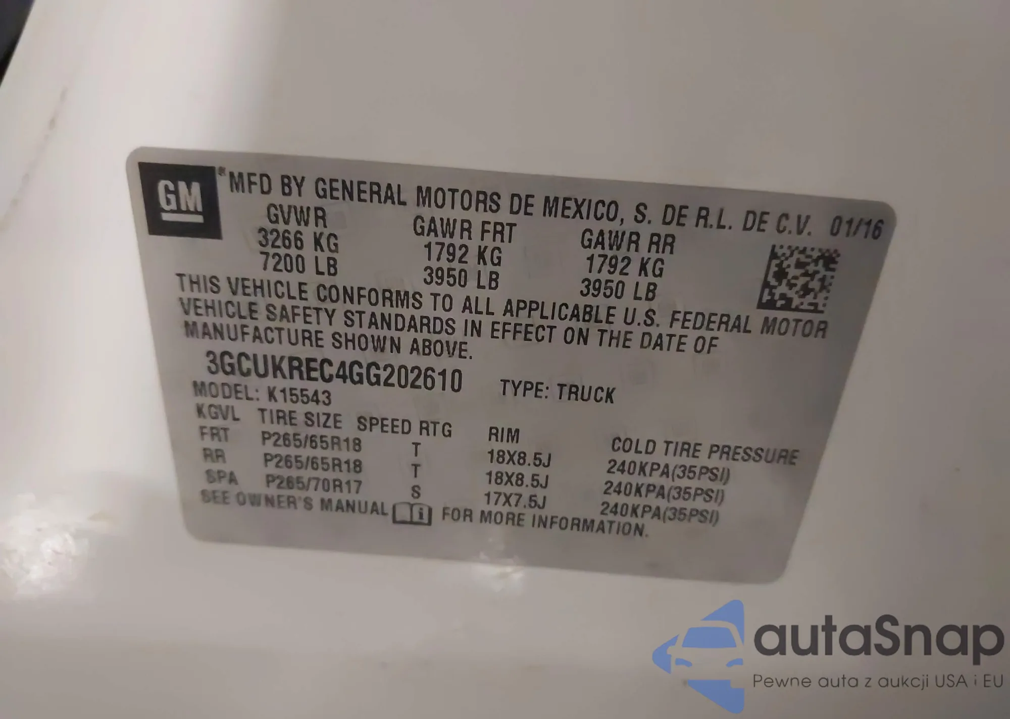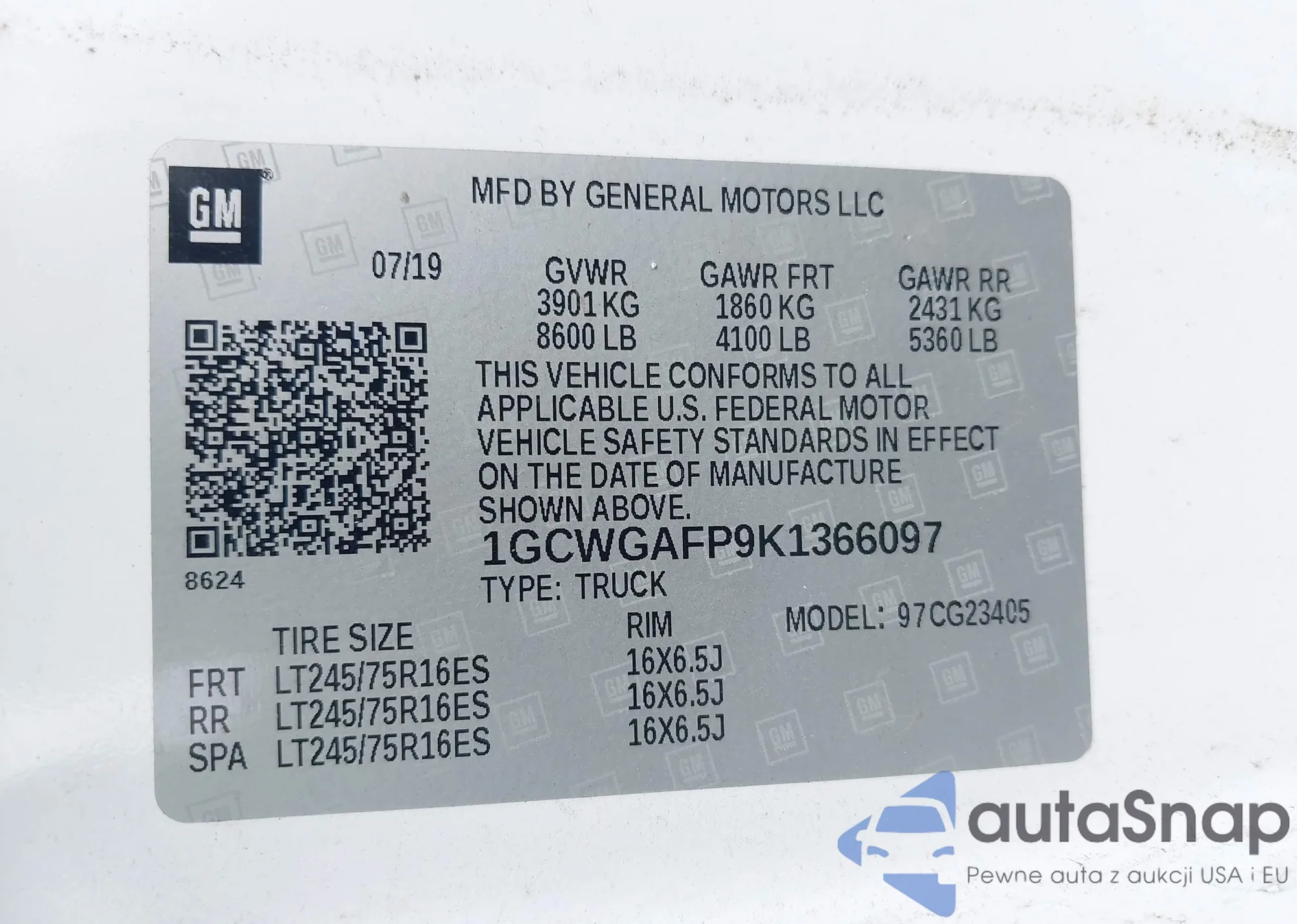 LOT: 43318442 VIN: 1FTEW1EF1GKF93762