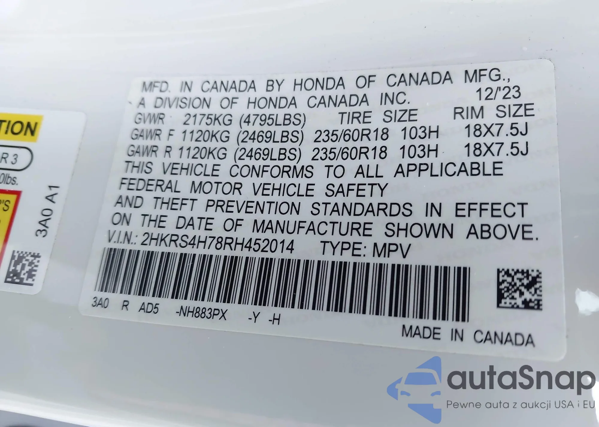 • VIN 2HKRS4H78RH452014