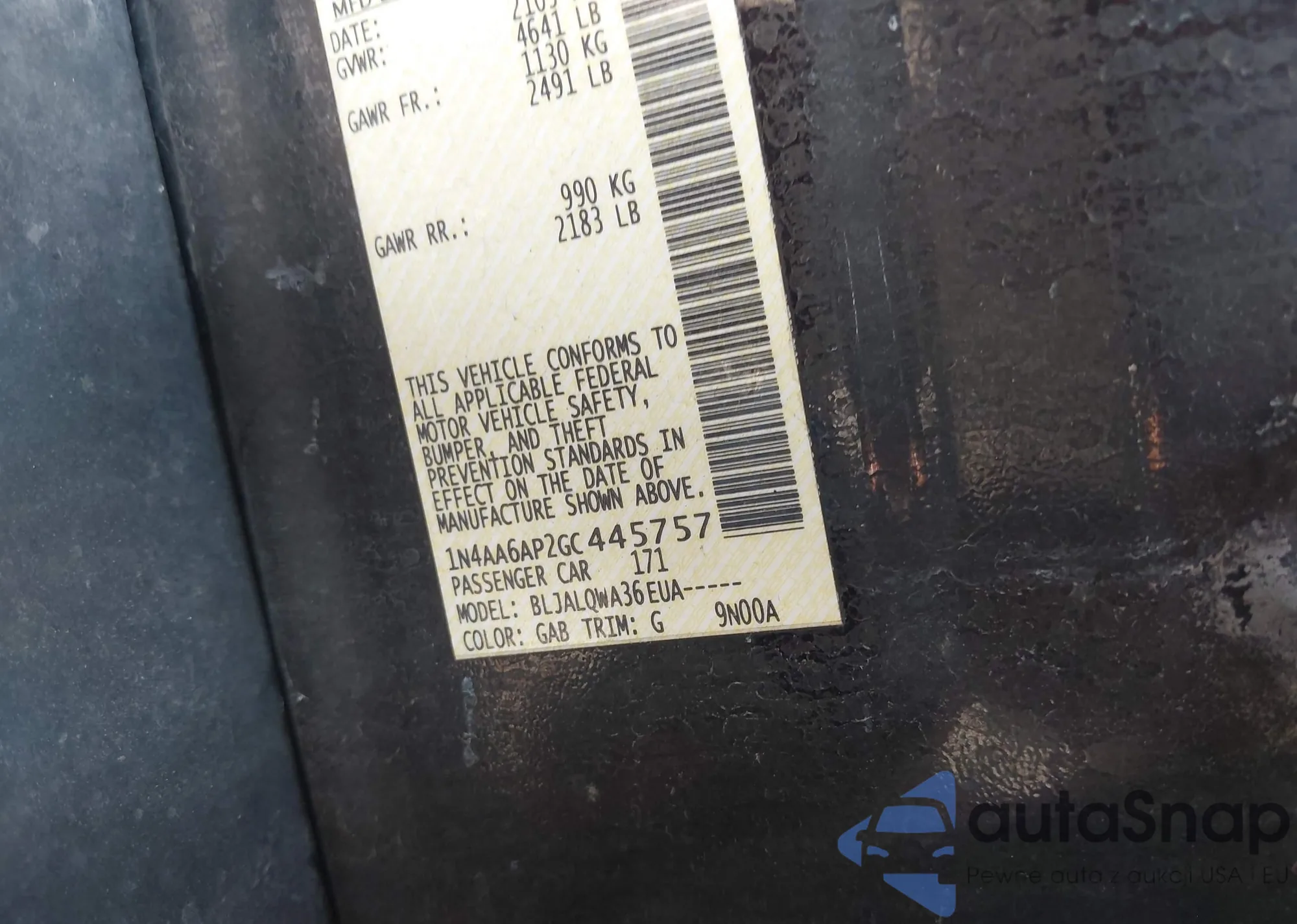 • VIN 1N4AA6AP2GC445757