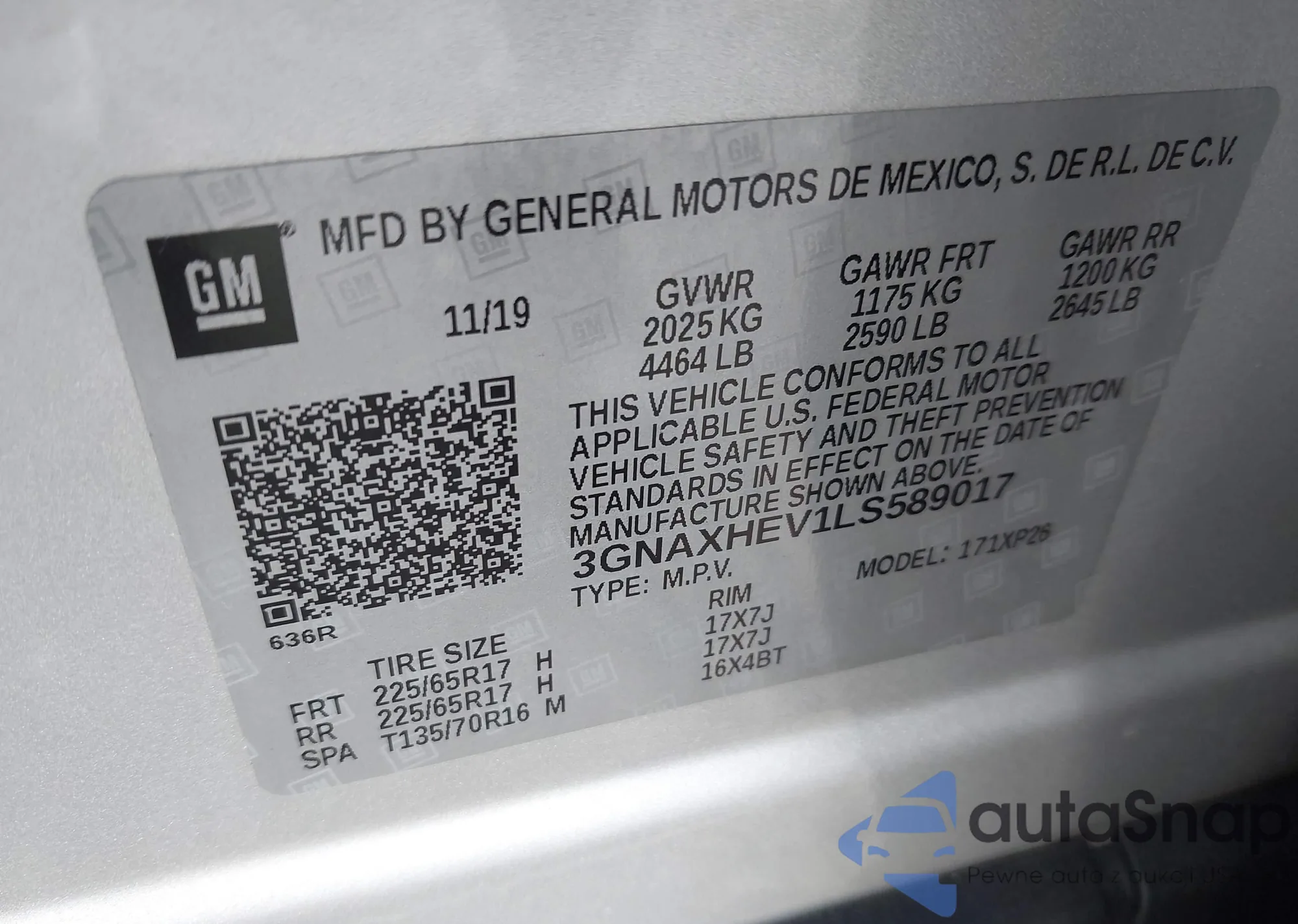• VIN 3GNAXHEV1LS589017