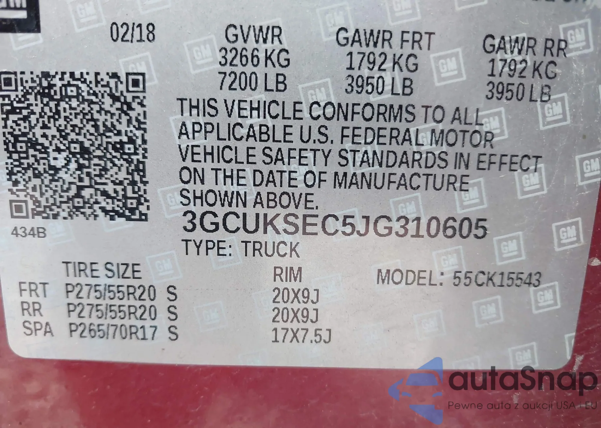 LOT: 43213422 VIN: 5NPE34AF0JH648496