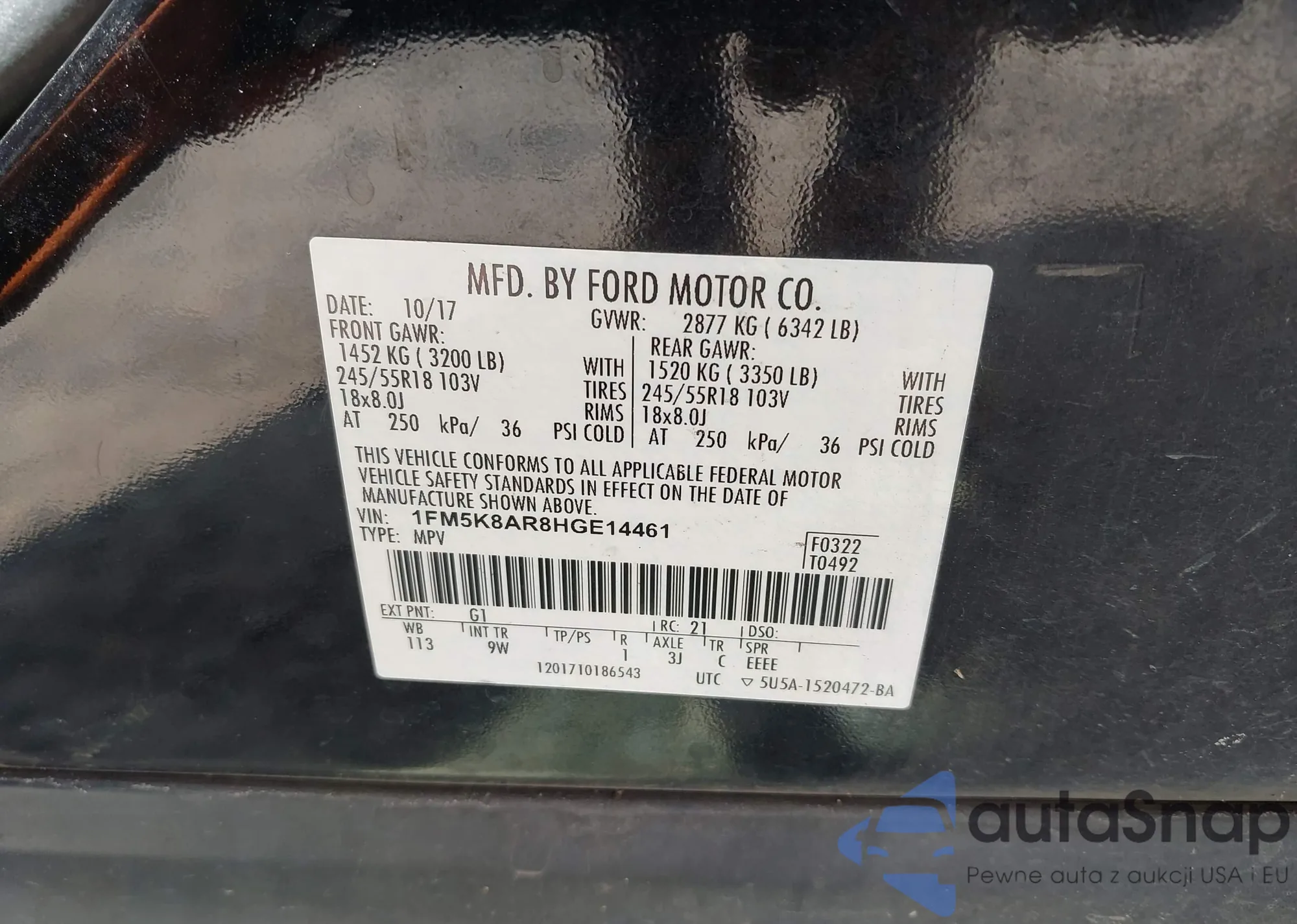 LOT: 42933158 VIN: 1HGCR2F13HA071599